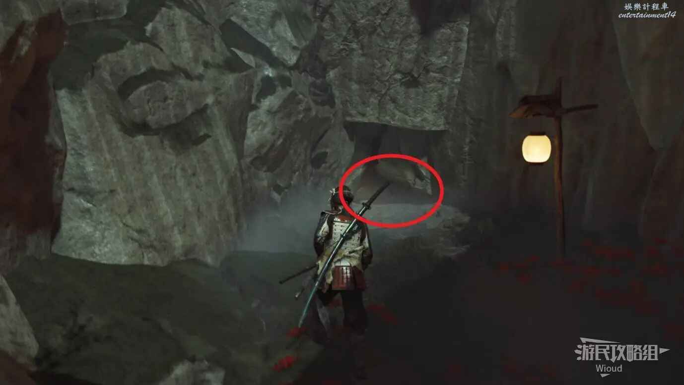 沿著裡面的坡道走,打開坡道拐角的寶箱,走不遠可以看到牆上的攀附點,直接爬上去。