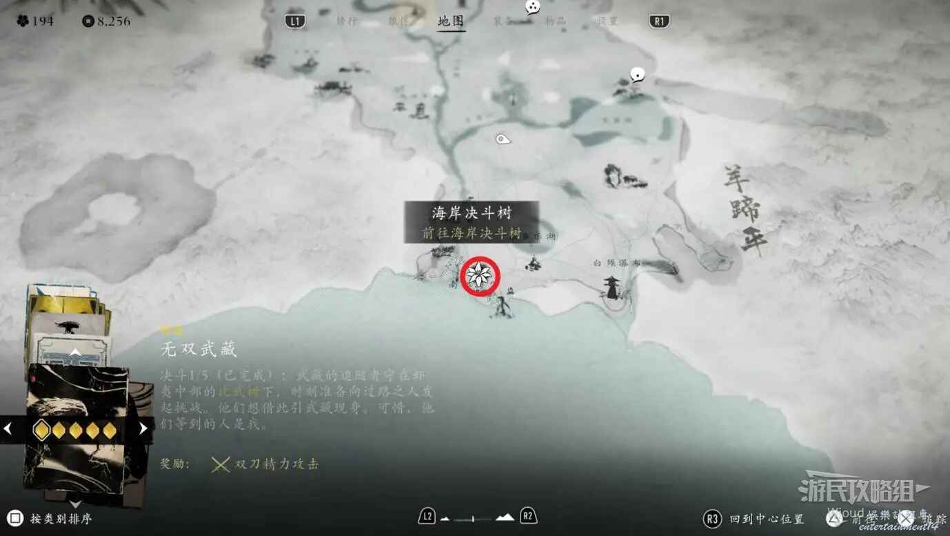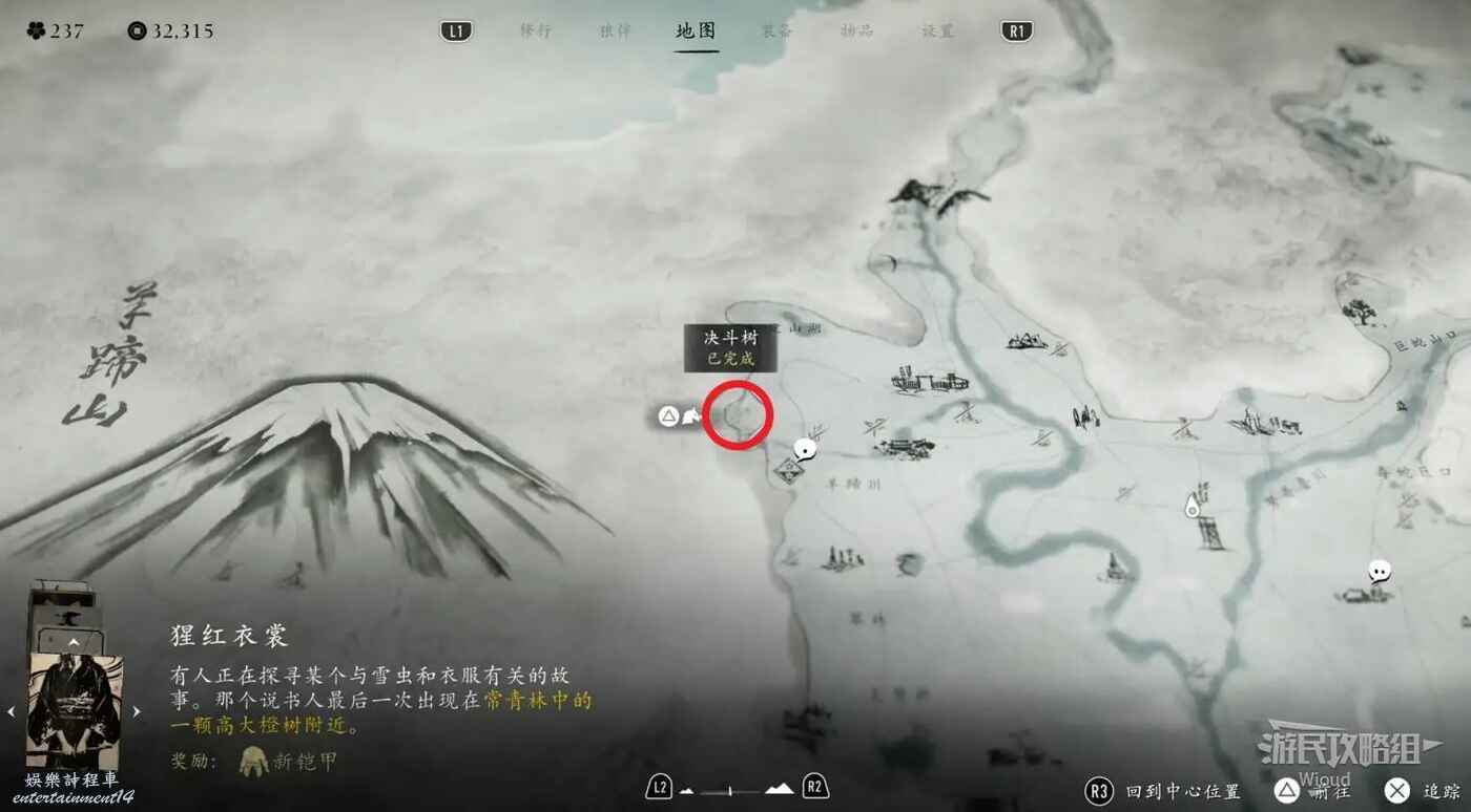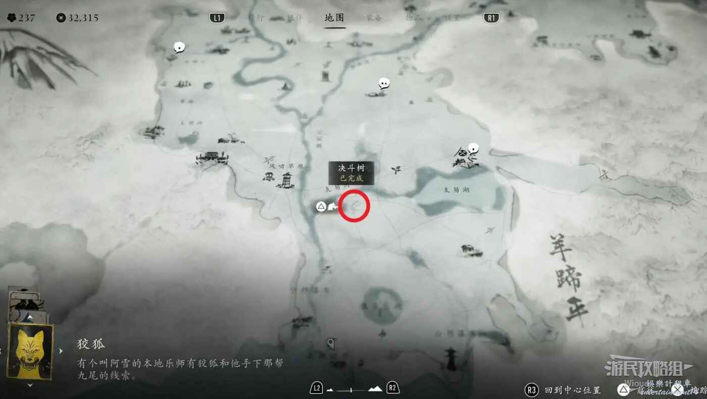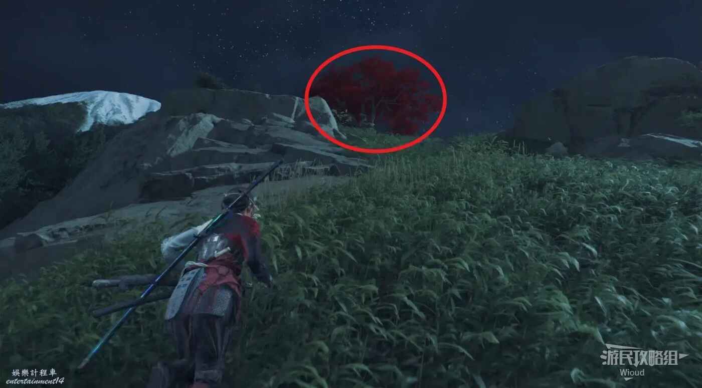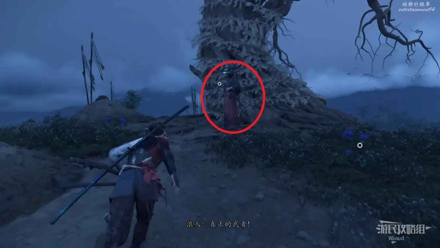 敵人就在樹下等著,靠近觸發戰鬥,將其擊敗獲得【武藏之頑抗護身符】。