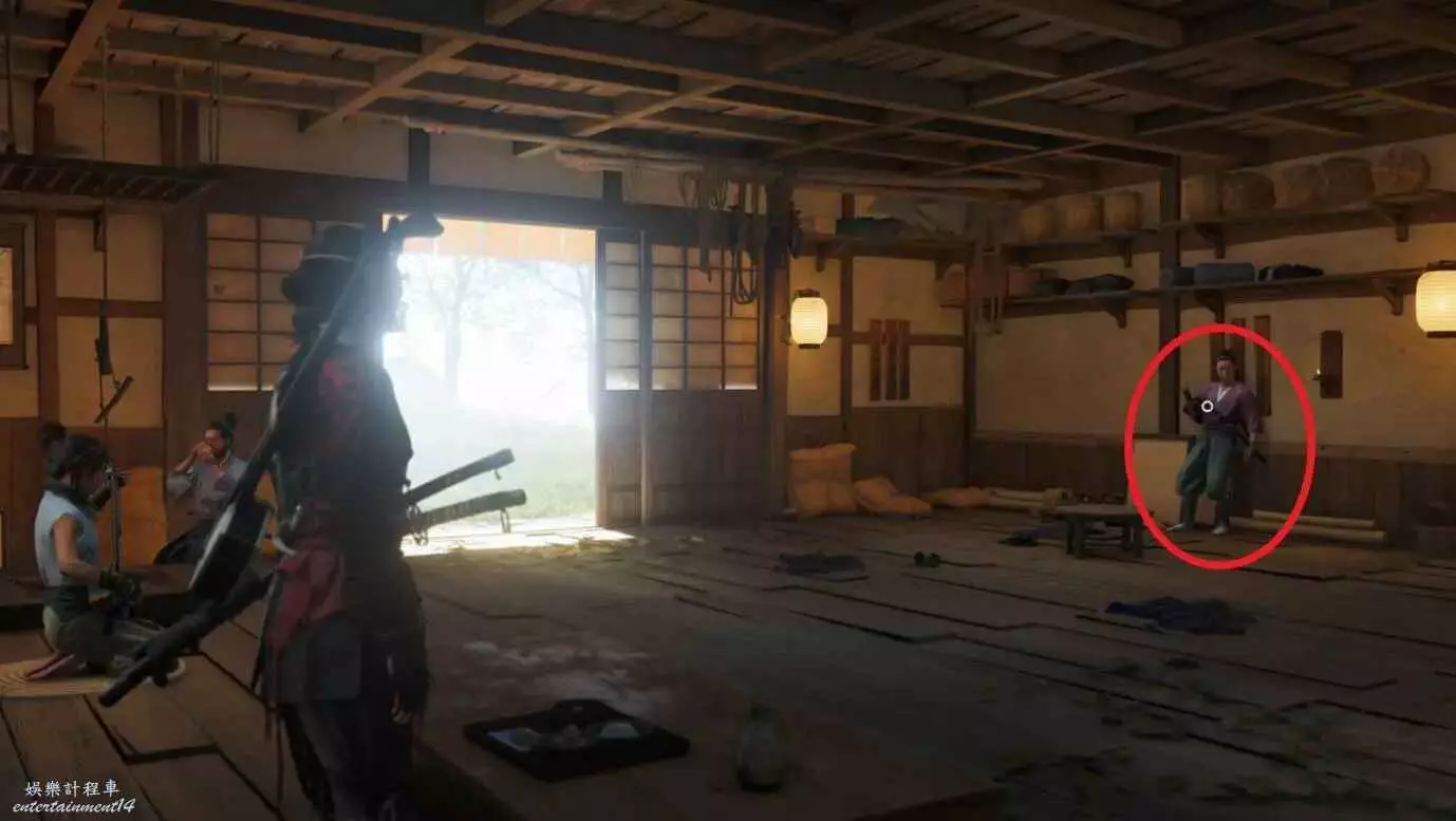 跟著NPC上二樓,發現窗戶外面有人直接拿火槍射我們。