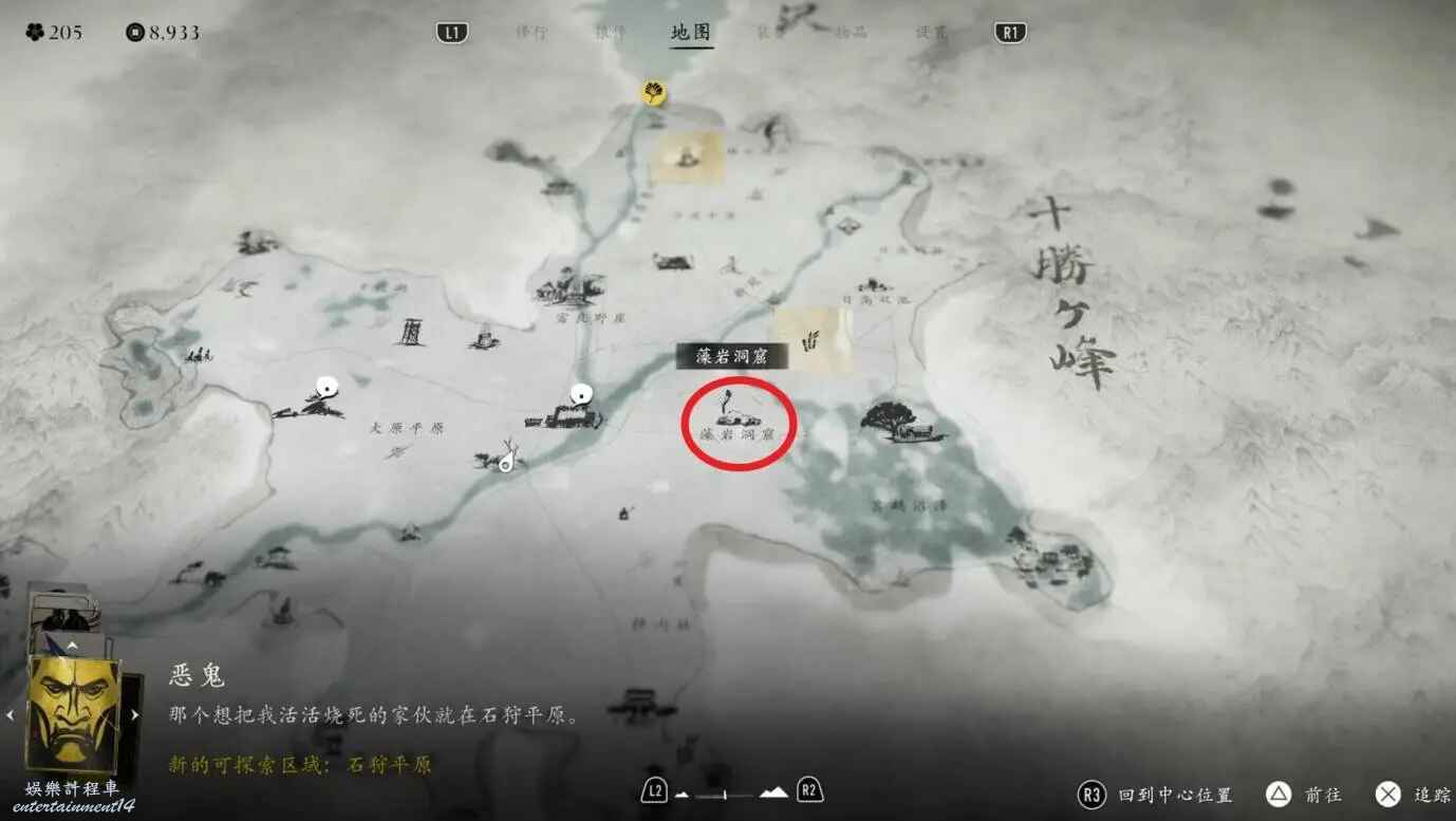 該支線的接取位置如下圖所示,移動到【十勝連峰】的【藻岩洞窟】。