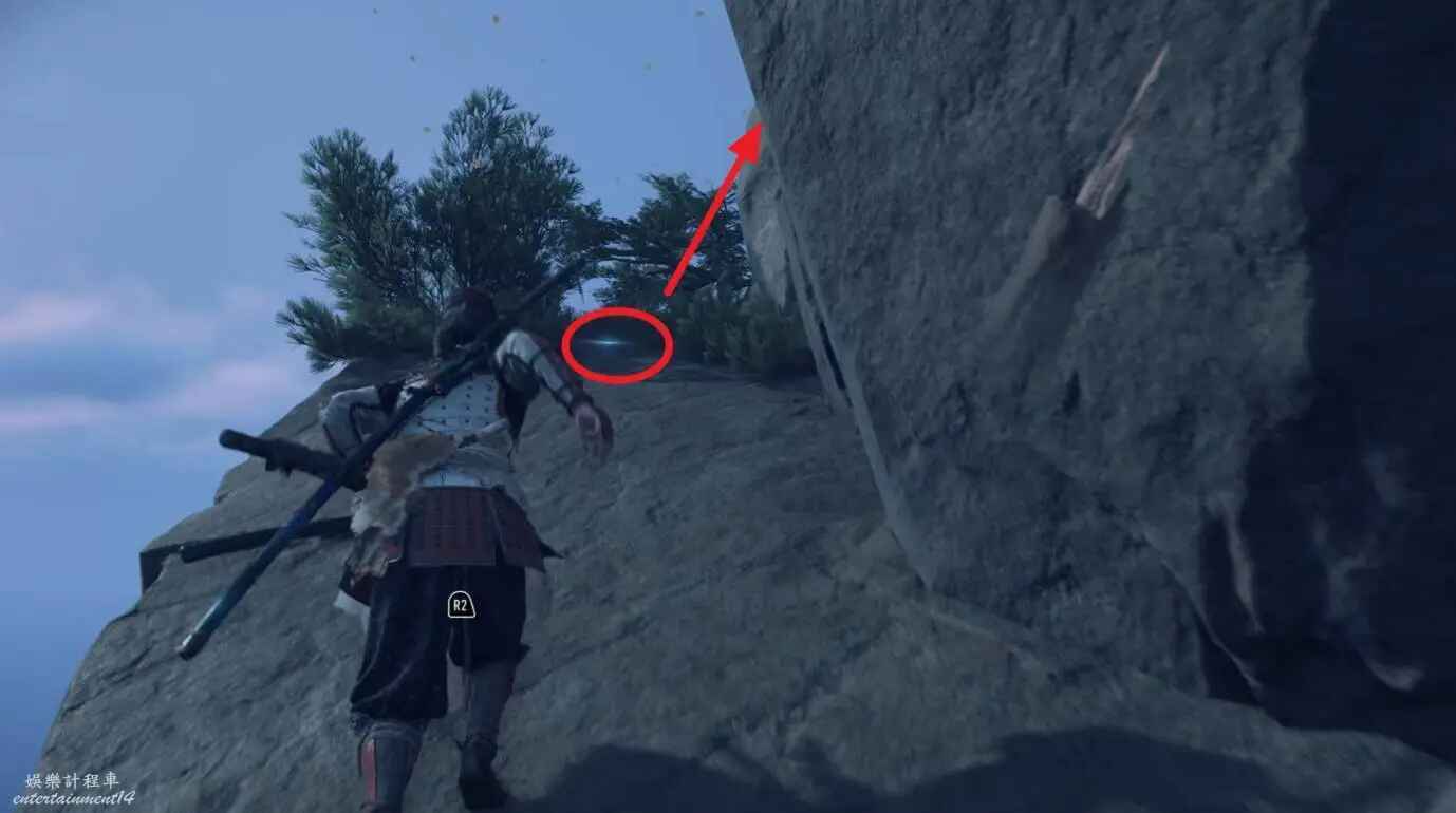 盡頭可拾取阿伊努物品【雷龐庫爾酒壺】,然後從右邊高台跳回去,跑酷半路會自動啟動旁邊的【亡者之柱】。
