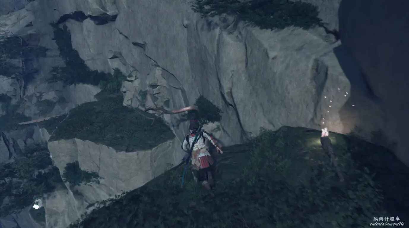 來到目的地和一個白髮NPC互動,跟著NPC走到一個攀附點前,跟著白色印記往下爬。