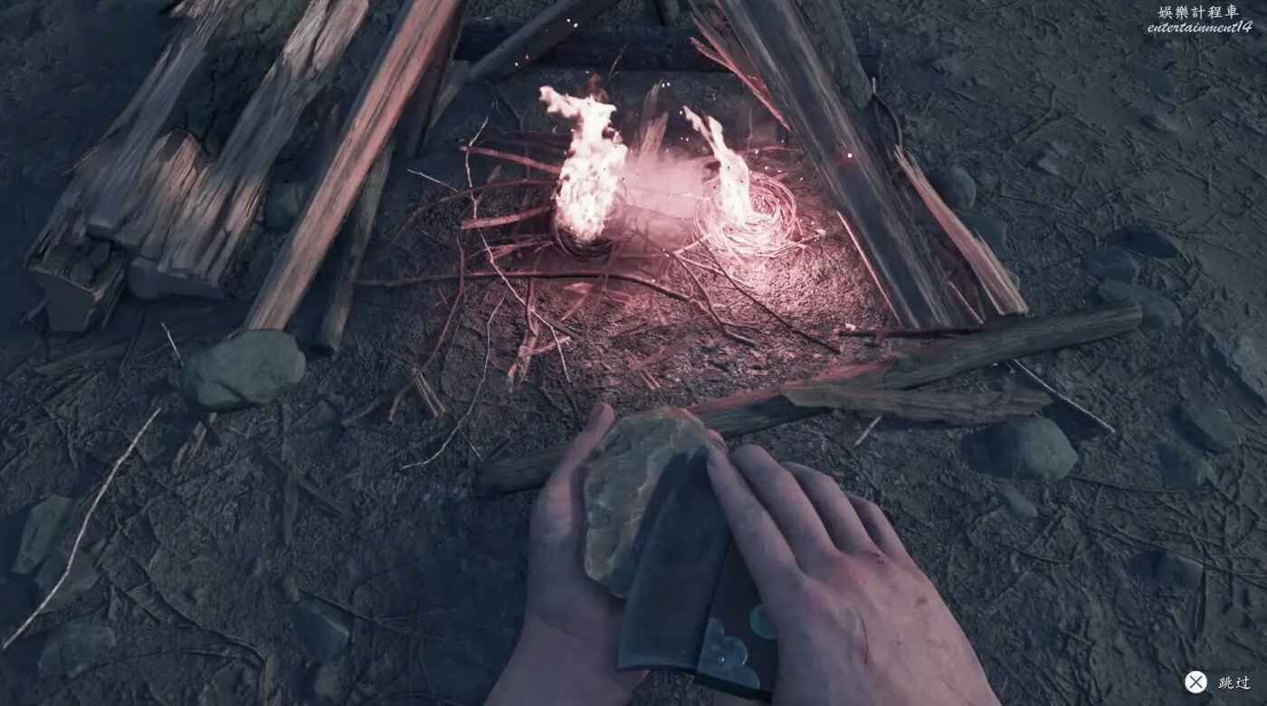 靠近會觸發劇情,趕走他們觸發露營,點火這段可直接按X鍵跳過。