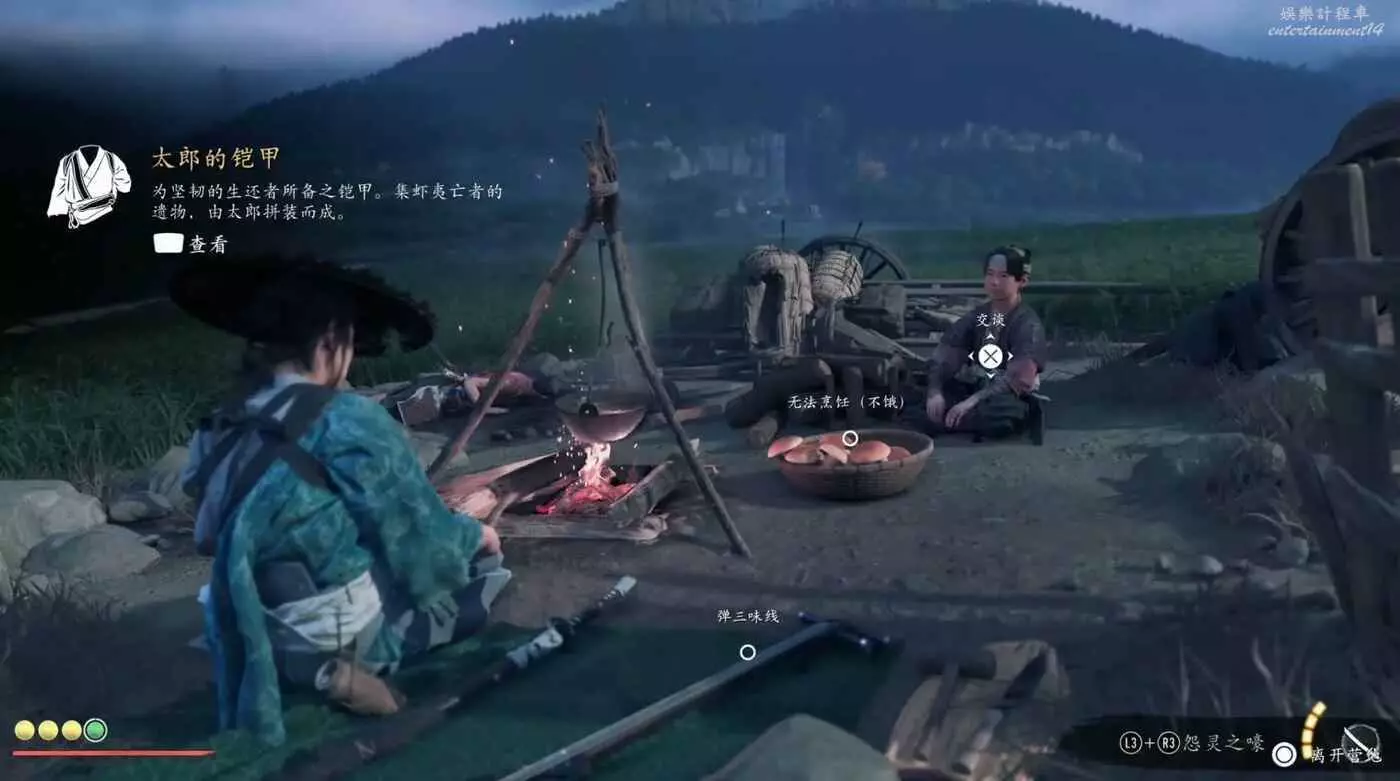 羊蹄山戰鬼 治癒護身符獲取教學 2 10 月 2025-10-02 廣告 作者:Wioud 來源:遊民星空 治癒護身符 在太郎處購買獲得,第一次遇到太郎是在【富士見客棧】左上的一個營地前碰到幾個武士在找一個孩子麻煩。 ※這段極大可能隨機觸發,如果此地沒有就正常跑圖,遲早會遇到! 靠近會觸發劇情,趕走他們觸發露營,點火這段可直接按X鍵跳過。 後續的劇情對話可獲得鎧甲【太郎的鎧甲】。 完事和太郎對話可購買武器皮膚【拾荒之勝】,三味線染料。 護身符【猛攻護身符】、【懸命護身符】、【吉祥天護身符】、【壯膽護身符】、【治癒護身符】。