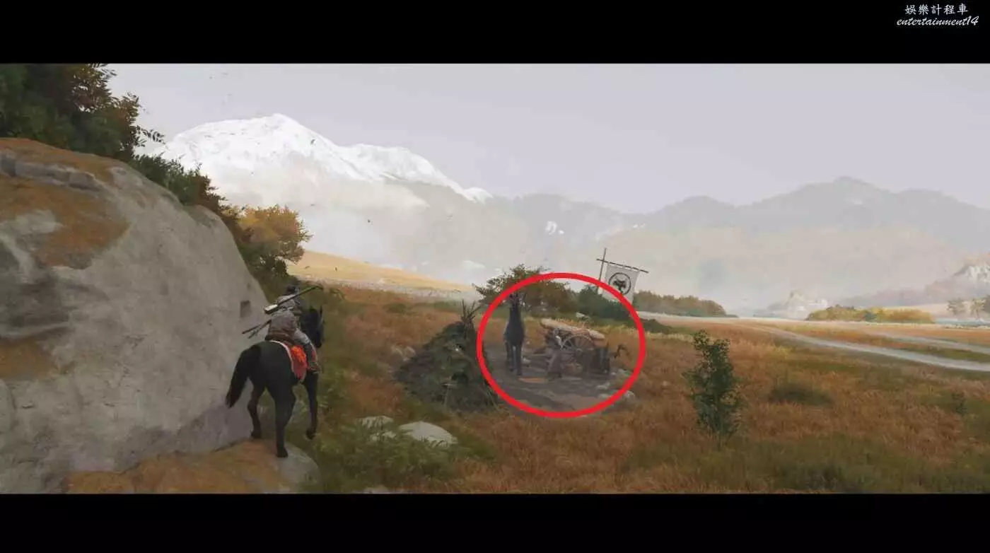 往太郎那移動時,在下圖位置可以找到一個牽馬的NPC。