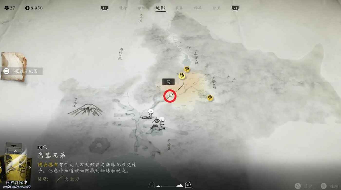往太郎那移動時,在下圖位置可以找到一個牽馬的NPC。