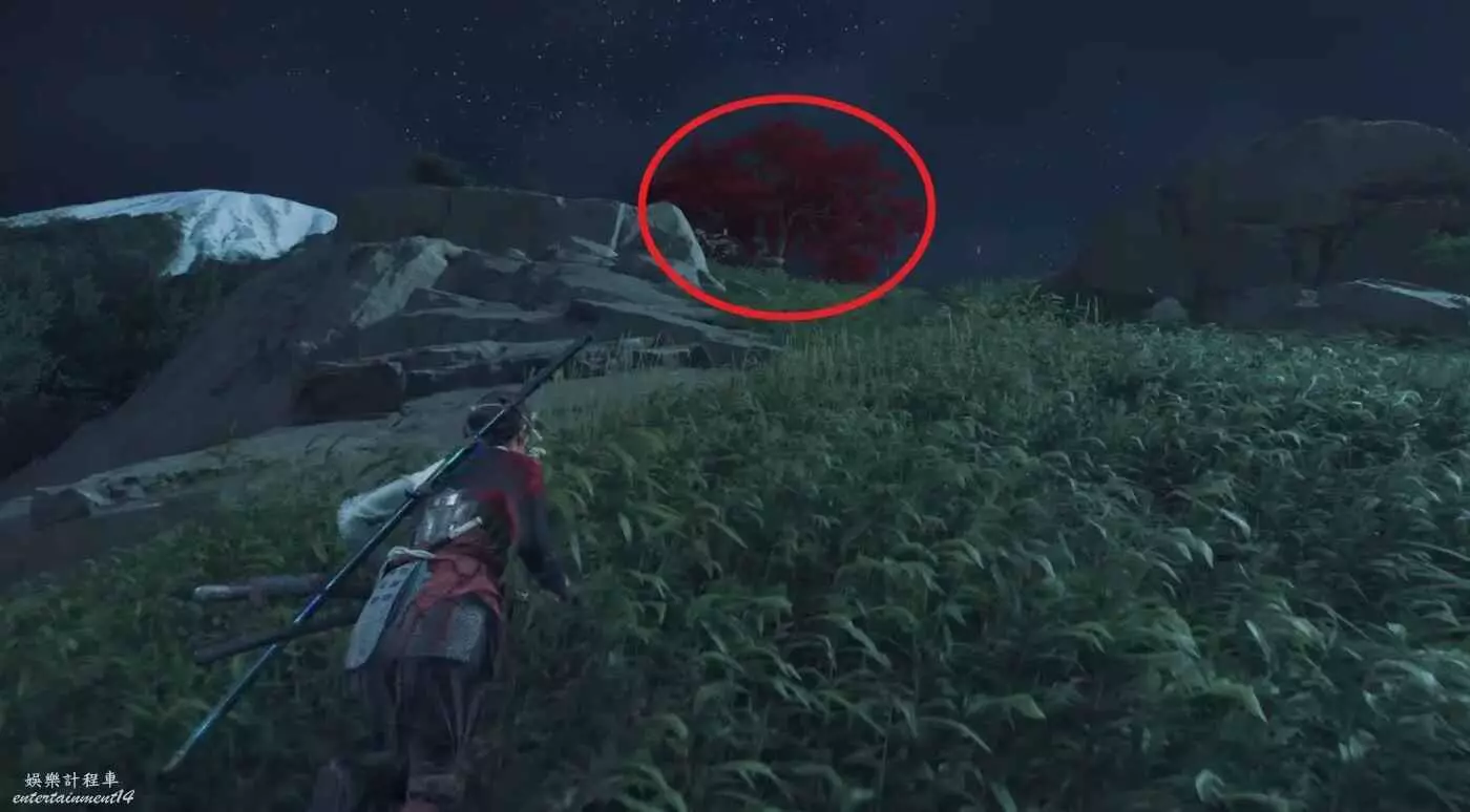目的地走到紅色大樹底下,NPC就在樹下等著。