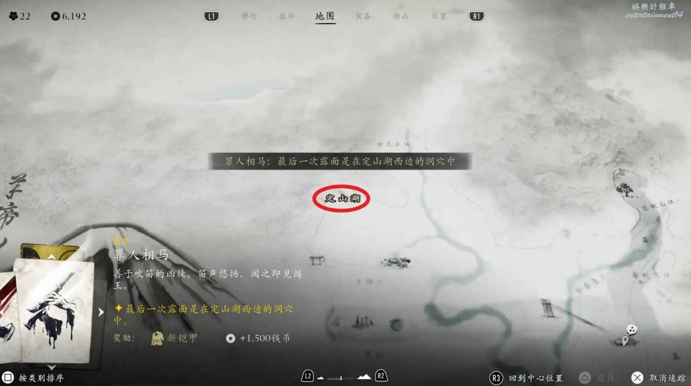 目標位置在【羊蹄草原】左上方的【定山湖】區域。