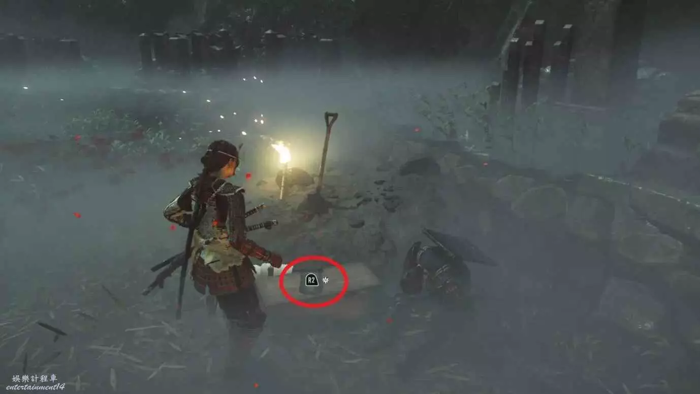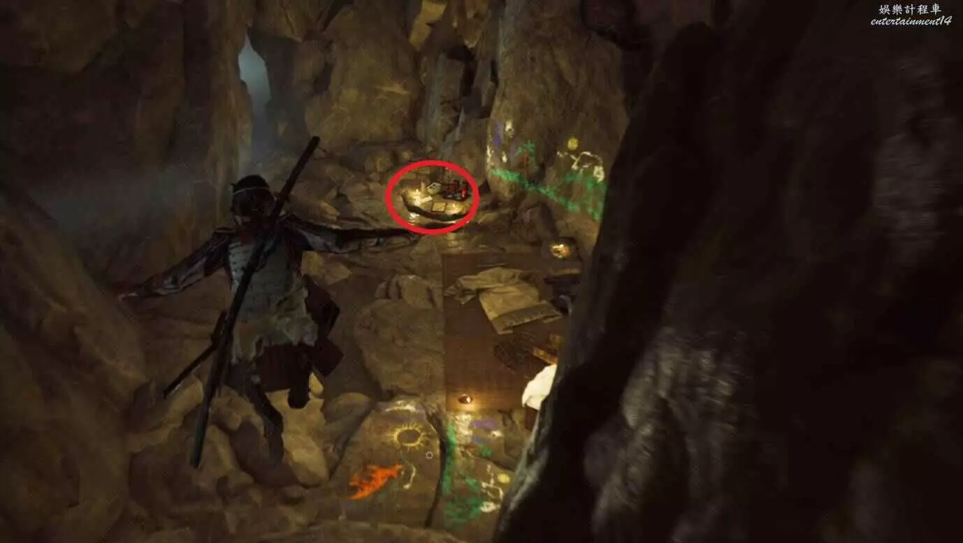 看到第二波盜墓賊時靠近觸發劇情,彼岸花大將會把他們直接帶走,我們只需要走到下圖所示位置和信互動獲得【刻印鑰匙二】。