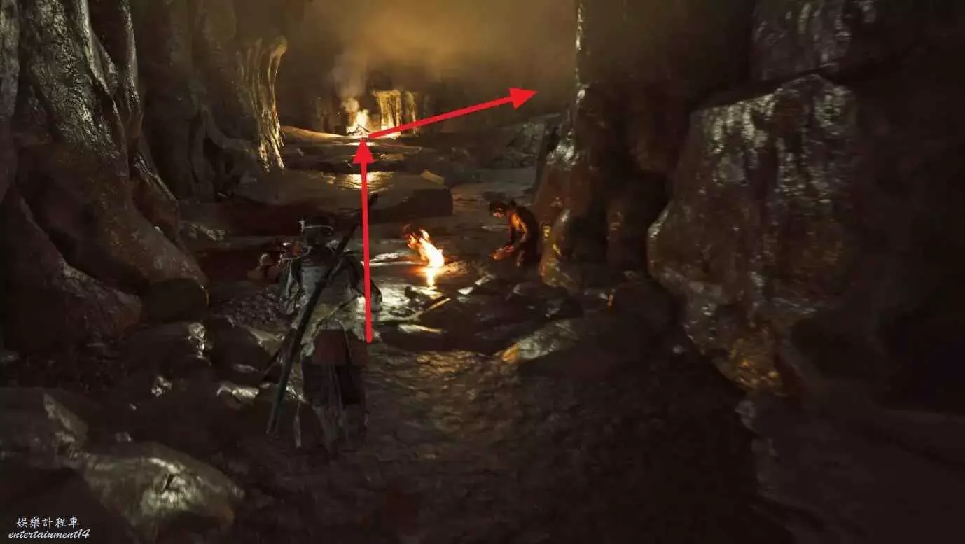 完事往目標塔樓右邊走,不遠處遇到一夥盜墓賊,擊敗他們後爬樓梯沿路走。