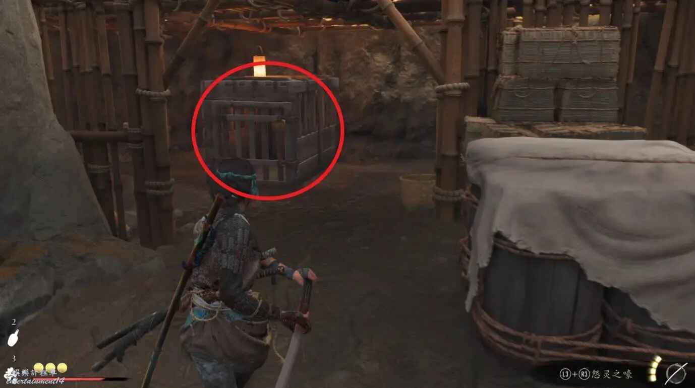 下去貼左牆走到頭找到個籠子,籠子左邊有寶箱開。