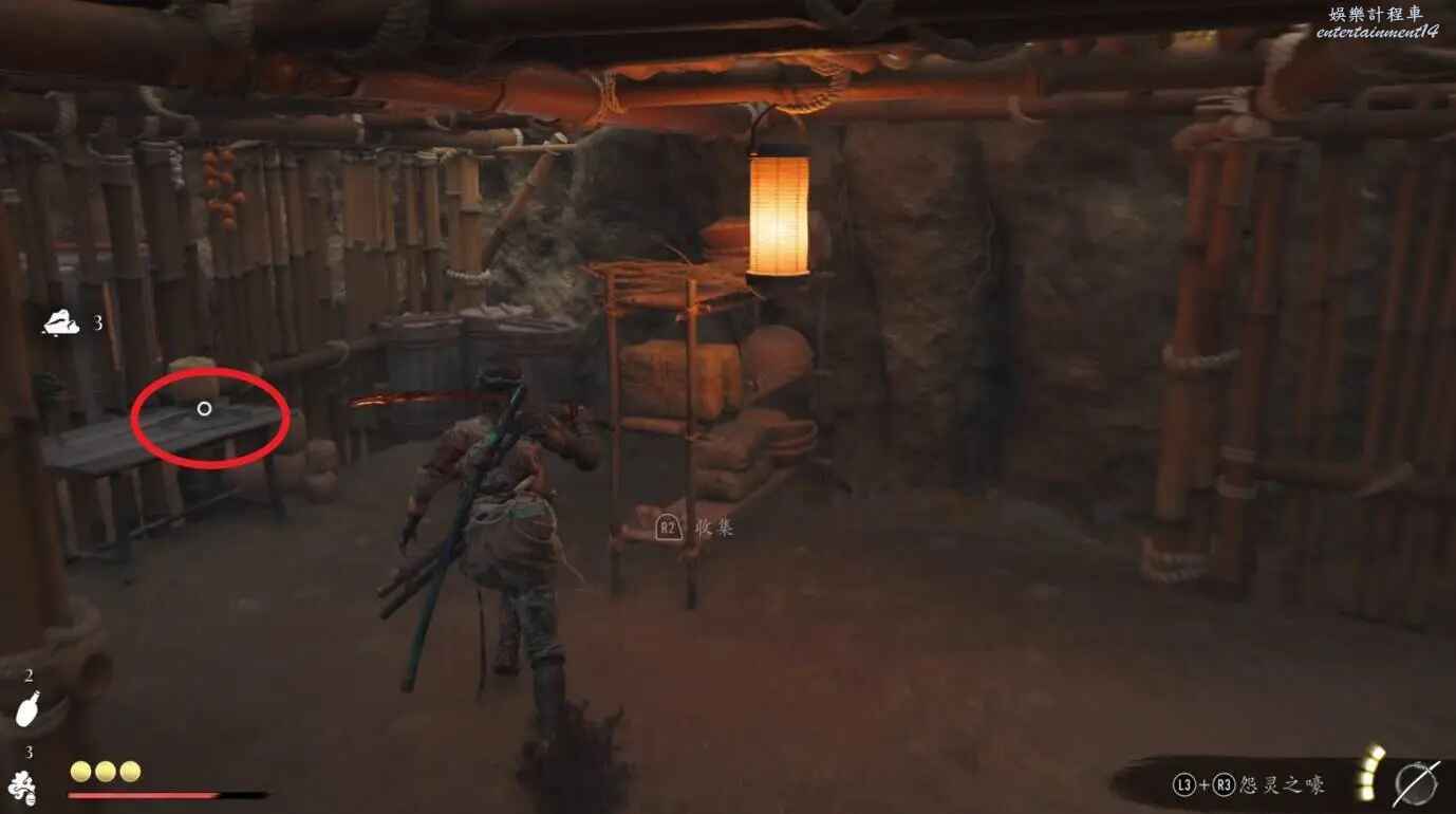 上面往左走,注意木樁和石頭中間有個往下走的洞口。