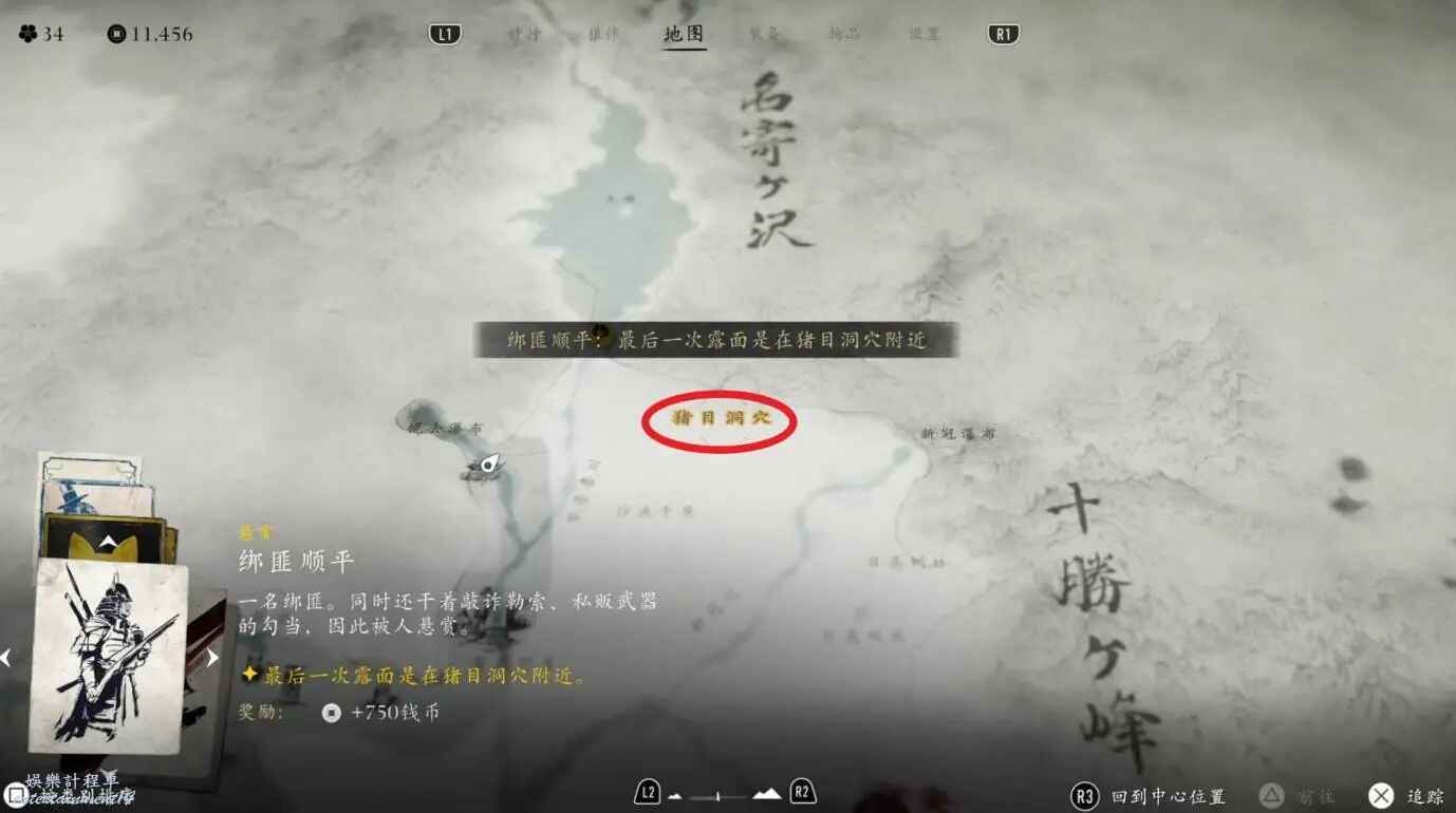 完成【十勝連峰】區域大太刀師傅任務,解鎖懸賞【綁匪順平】的情報。