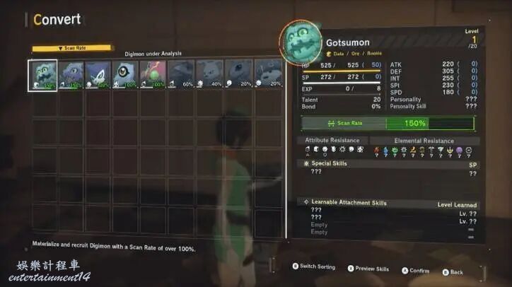 分析(Analyze)-查看敵方數碼獸的屬性、技能和數值,不消耗回合