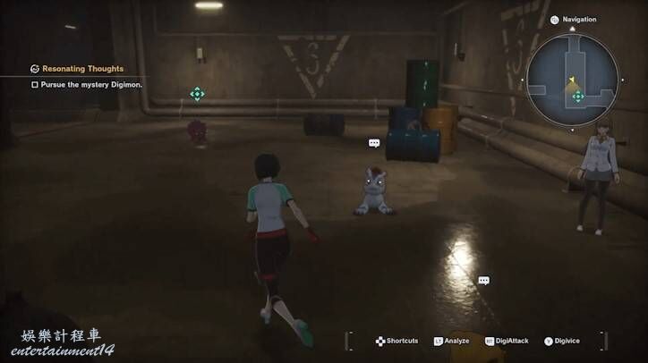 4、繼續跟隨神秘數碼寶貝,直到系統提示您使用附近的面板來阻擋其逃生路線。之後,繼續追擊,直到到達下一個區域。