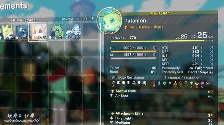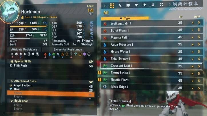 注意:素材數碼獸已裝備的附屬技能將直接移植,未裝備的技能也會全部轉移。