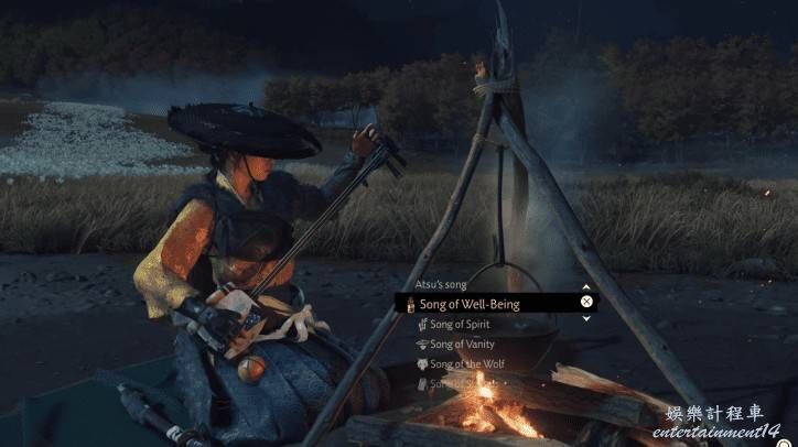 演奏三味線可學習新曲目,不同曲目能帶來不同效果,有時甚至會觸發全新的冒險任務。可演奏的曲目包括:
