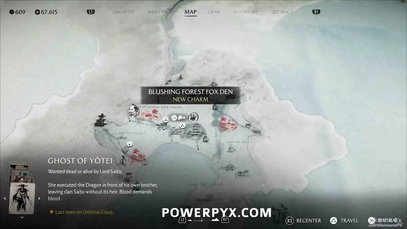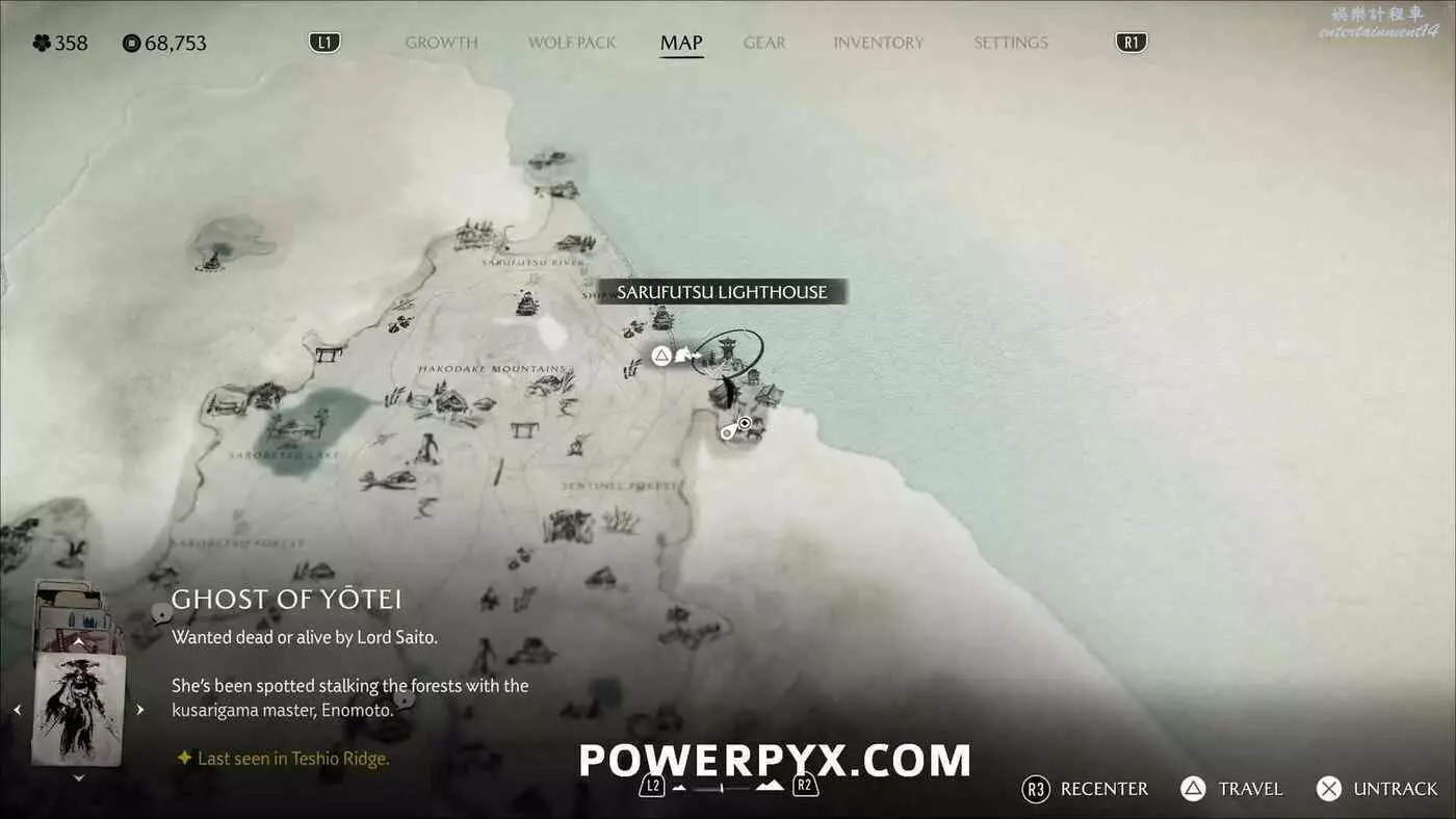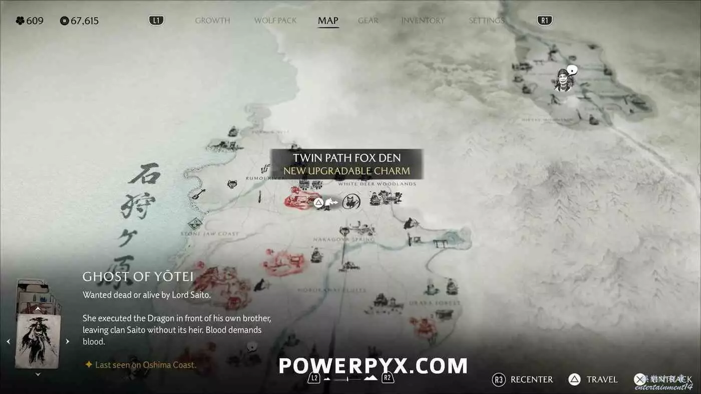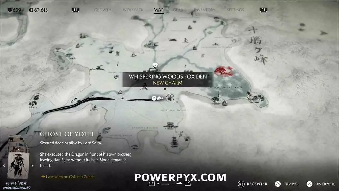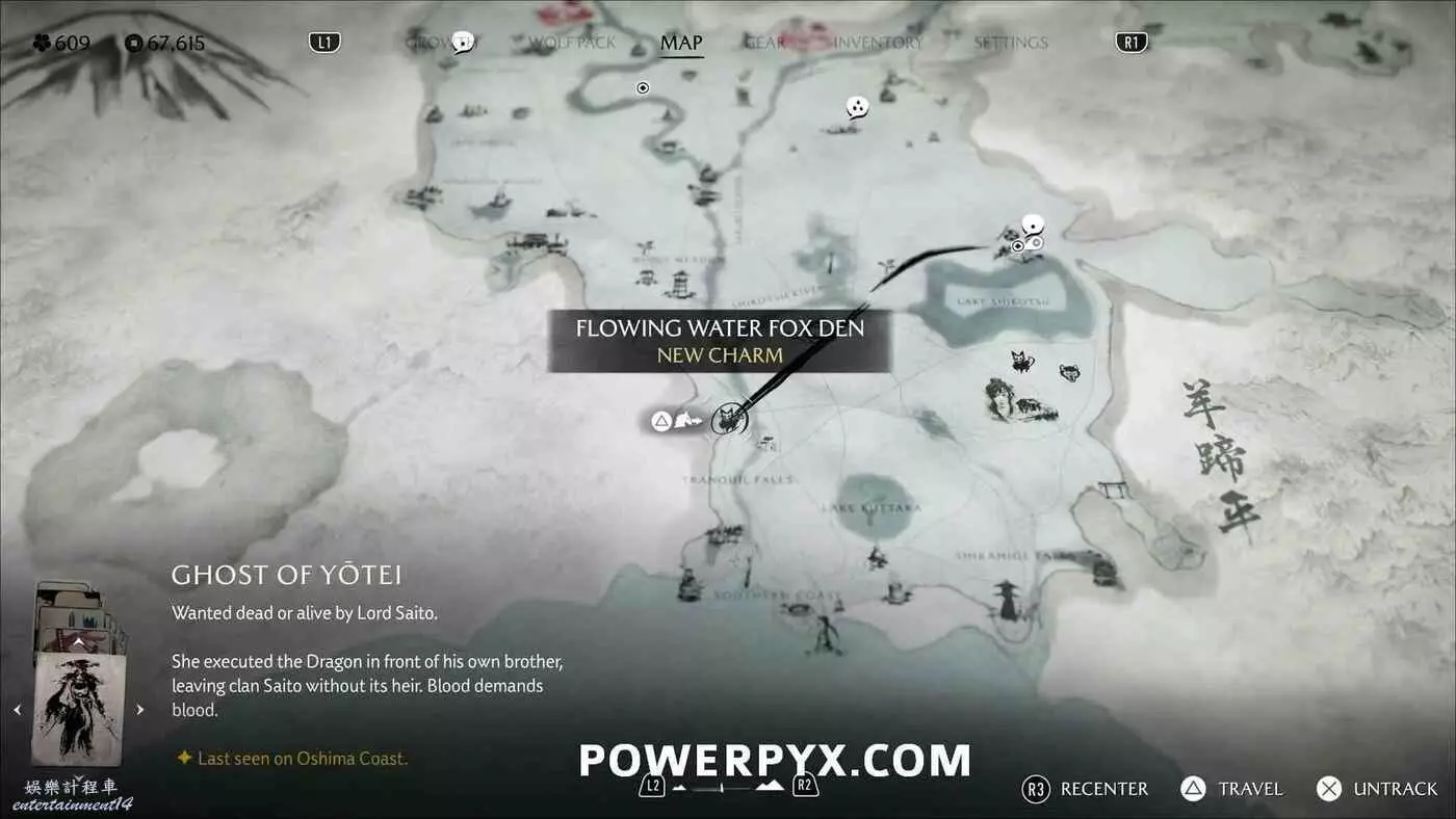 燈塔處有一道上鎖的門和4座狐狸雕像。需要旋轉左側2座狐狸雕像使它們互相面對,右側兩座也同樣操作使其兩兩相對。然後拾取小狐狸雕像放在門前的底座上。穿過大門沿後方的路一直走到區域盡頭,跟隨一隻小熊前進,然後與一名女性NPC交談,獲得狐狸面具,同時解鎖【稻荷護法】獎盃。