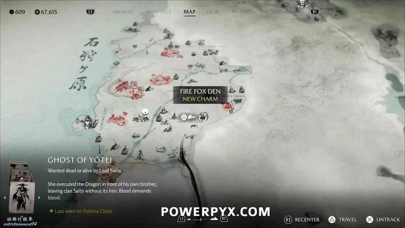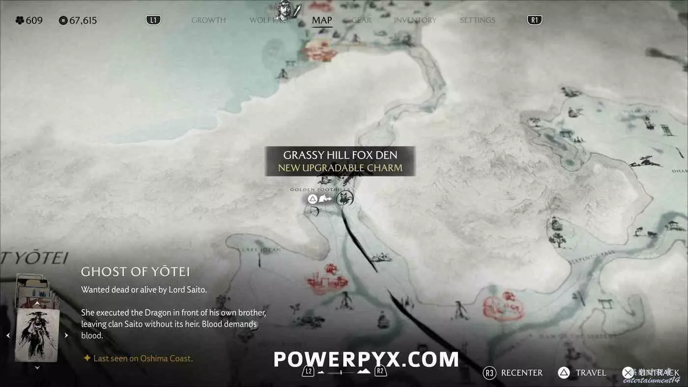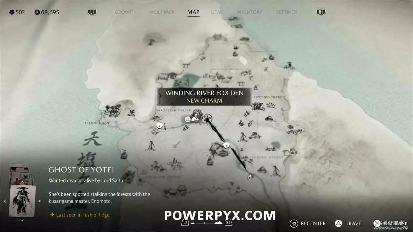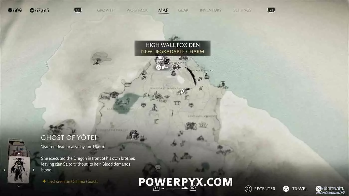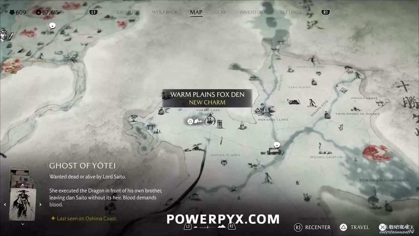 燈塔處有一道上鎖的門和4座狐狸雕像。需要旋轉左側2座狐狸雕像使它們互相面對,右側兩座也同樣操作使其兩兩相對。然後拾取小狐狸雕像放在門前的底座上。穿過大門沿後方的路一直走到區域盡頭,跟隨一隻小熊前進,然後與一名女性NPC交談,獲得狐狸面具,同時解鎖【稻荷護法】獎盃。