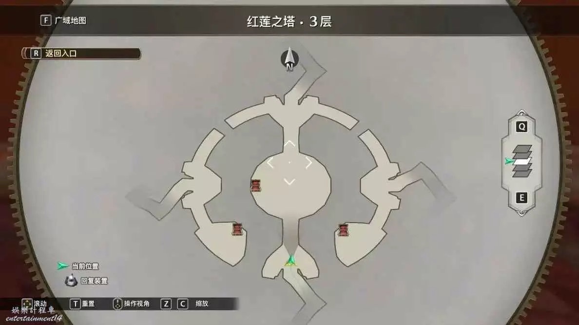 紅蓮之塔二層左右兩邊都為岔路但是上去可以拿寶箱之後返回走中間上去