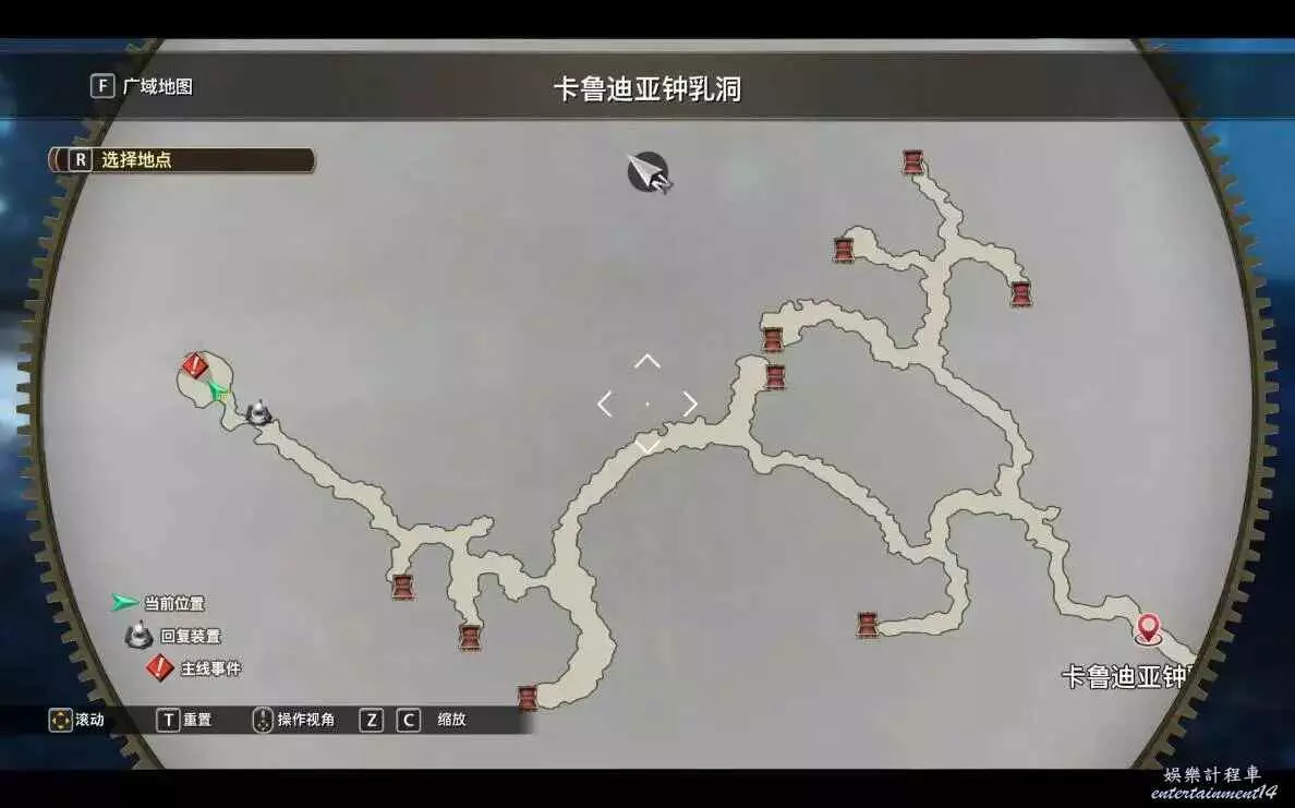 紅色嘆號處觸發劇情,鐘乳洞有兩條路,先去右邊的岔路拿寶箱,之後返回去另外一邊