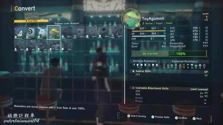 掃描率接近200%的數碼獸將擁有更高的才能值(等級上限)與最大HP,因此請務必通過反覆擊敗目標數碼獸來提升掃描率至該區間。