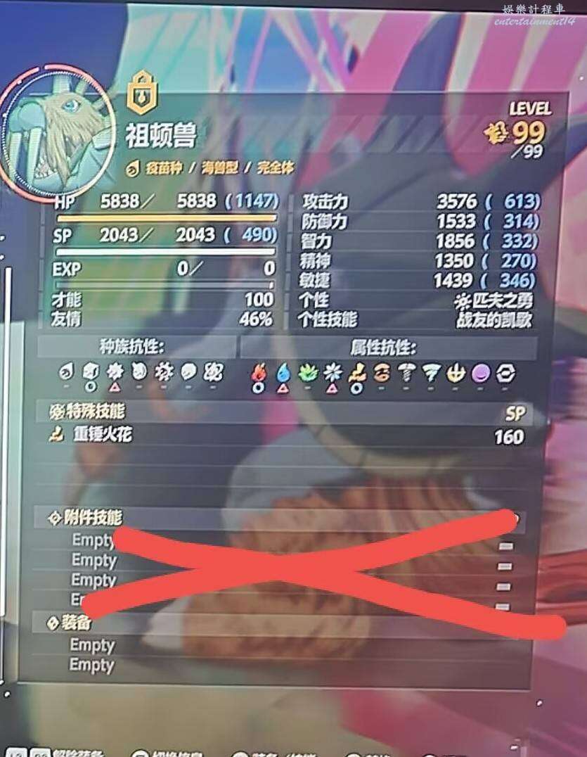 注意事項:也是跟毛人獸一樣,在提升等級的期間,附件會上技能影響效率,一定要記得全部卸載。