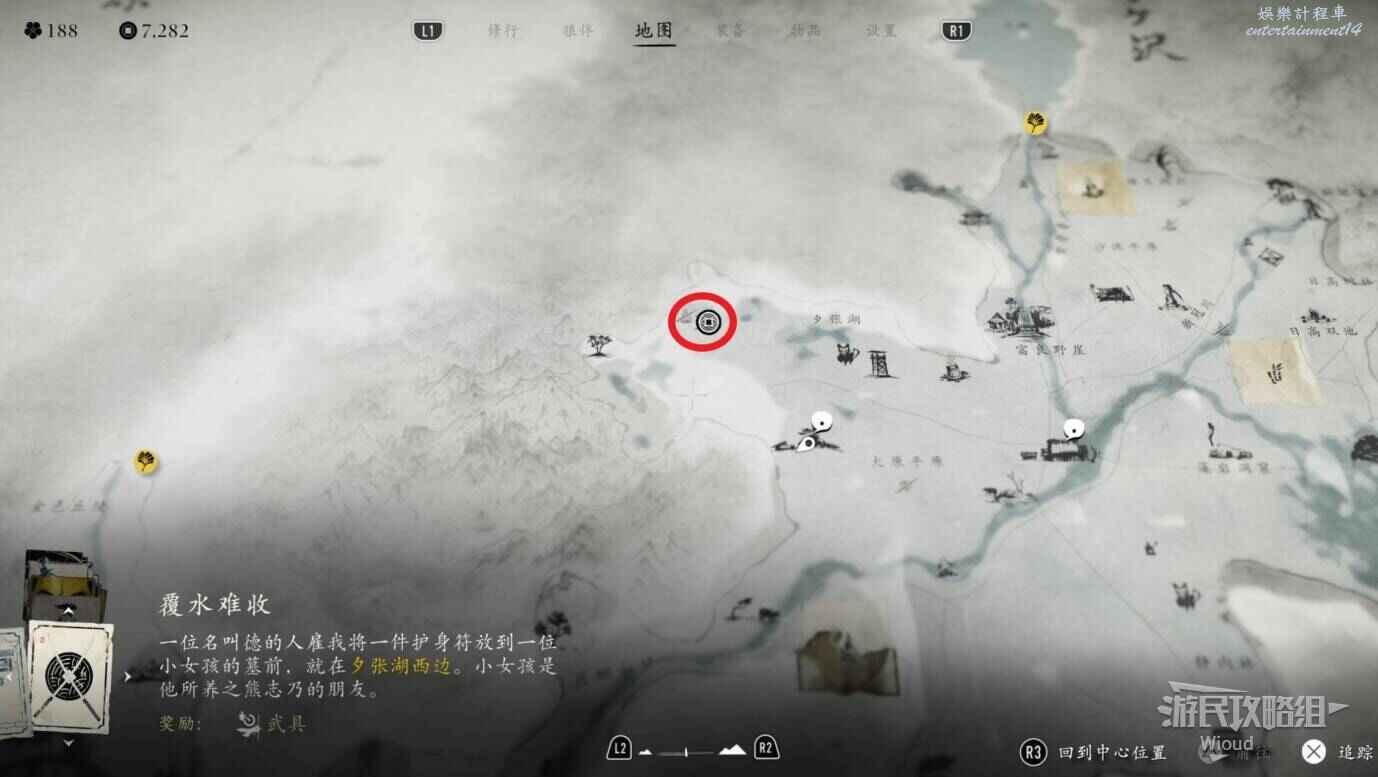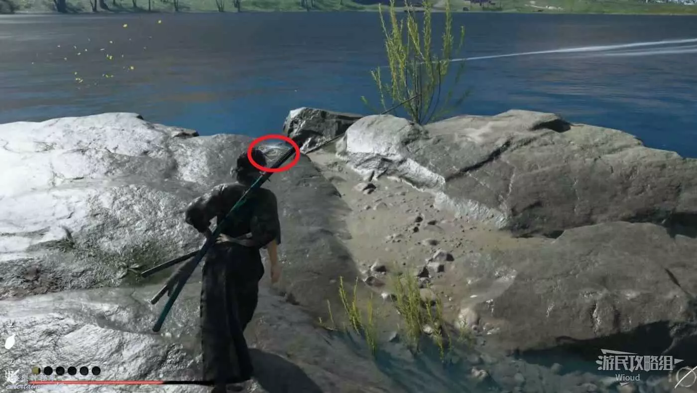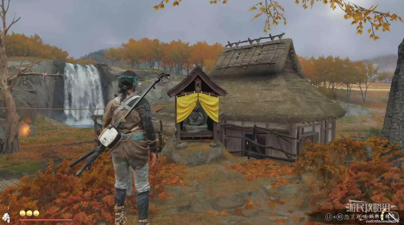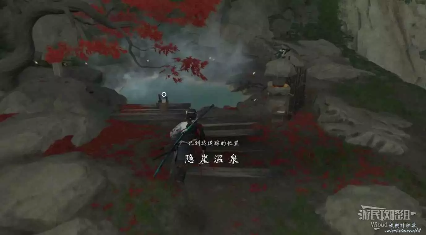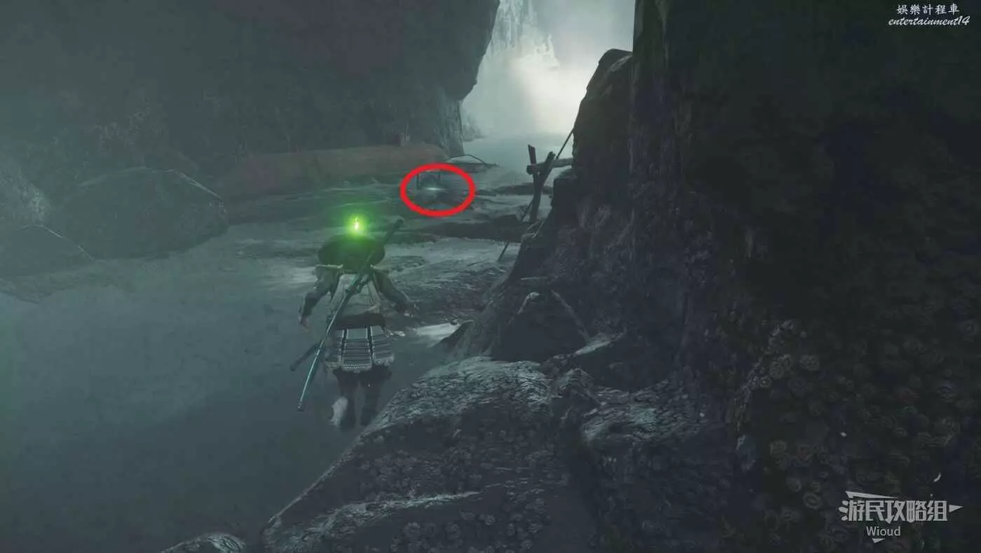 移動到目的地,面對瀑布可在左側的一棵樹前找到這個物品。