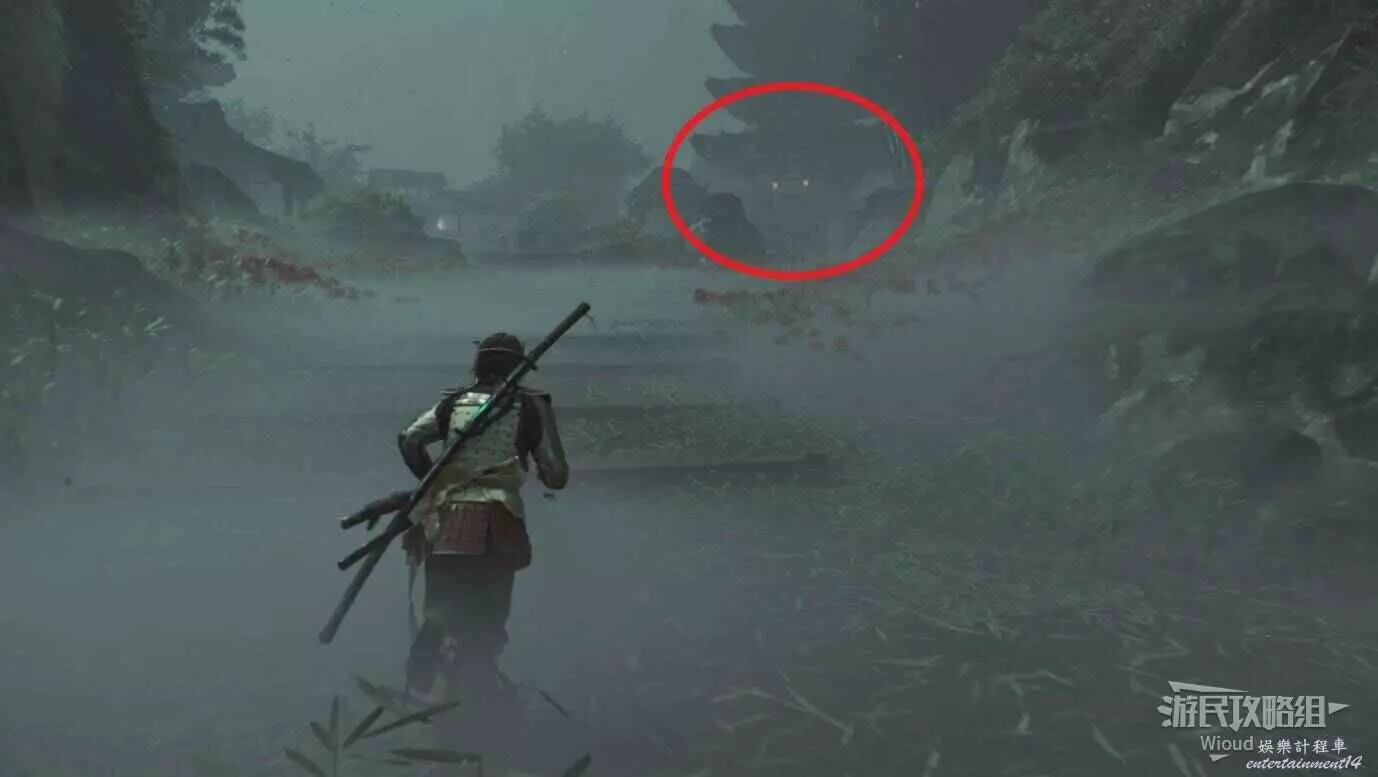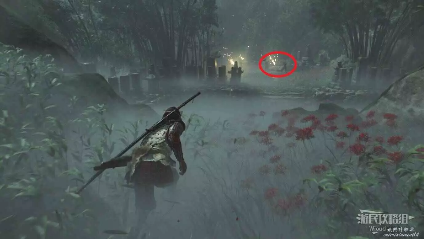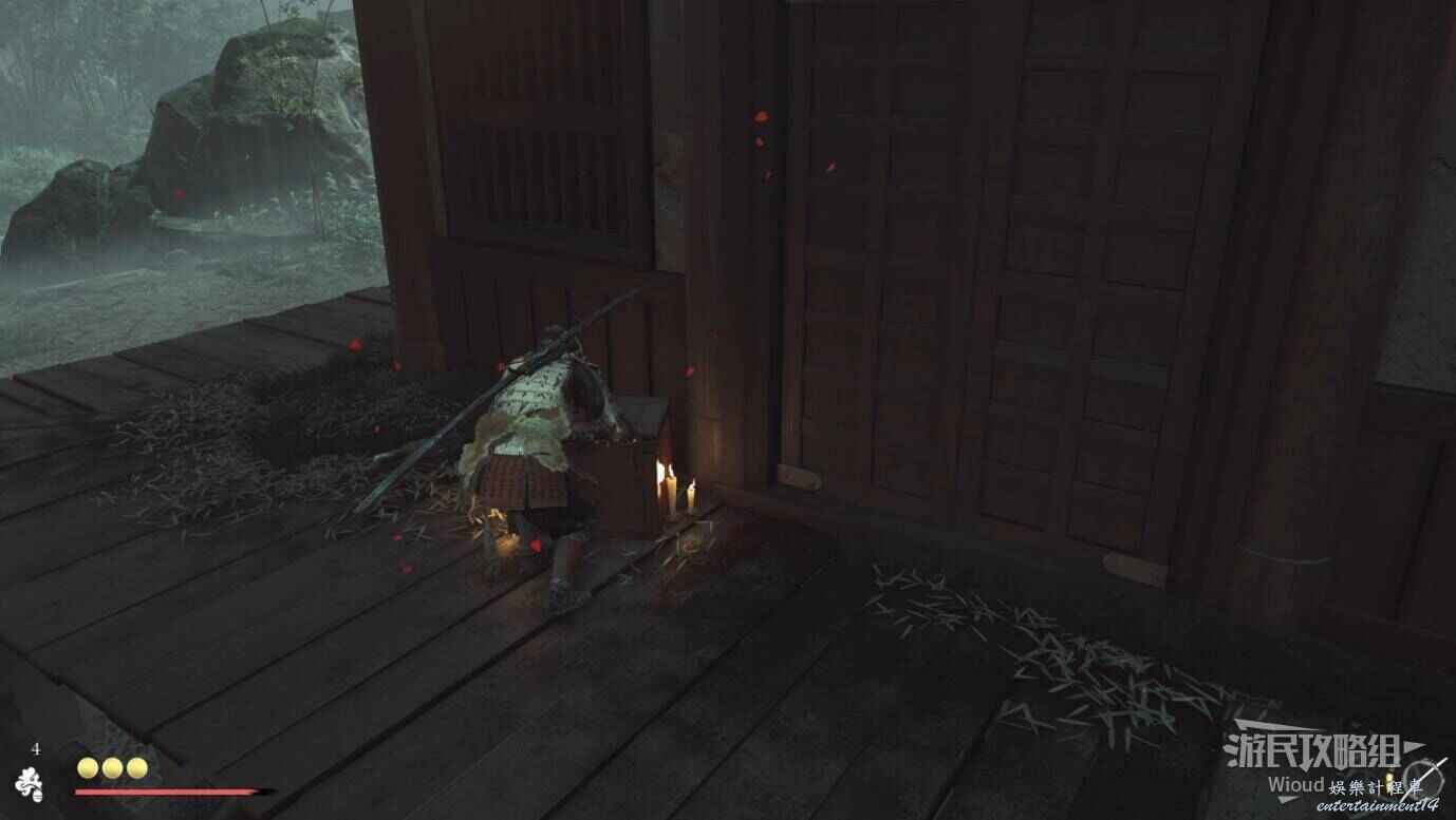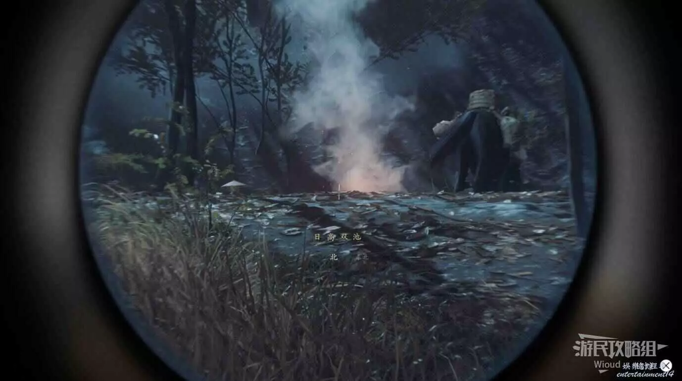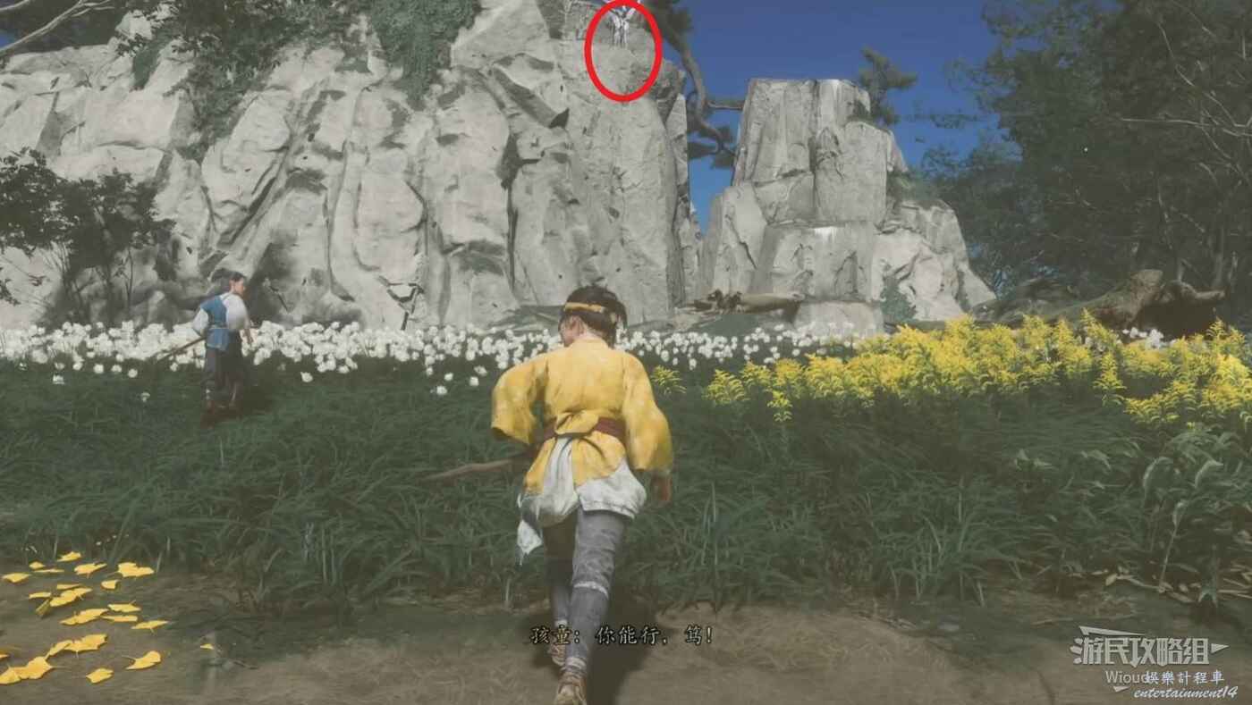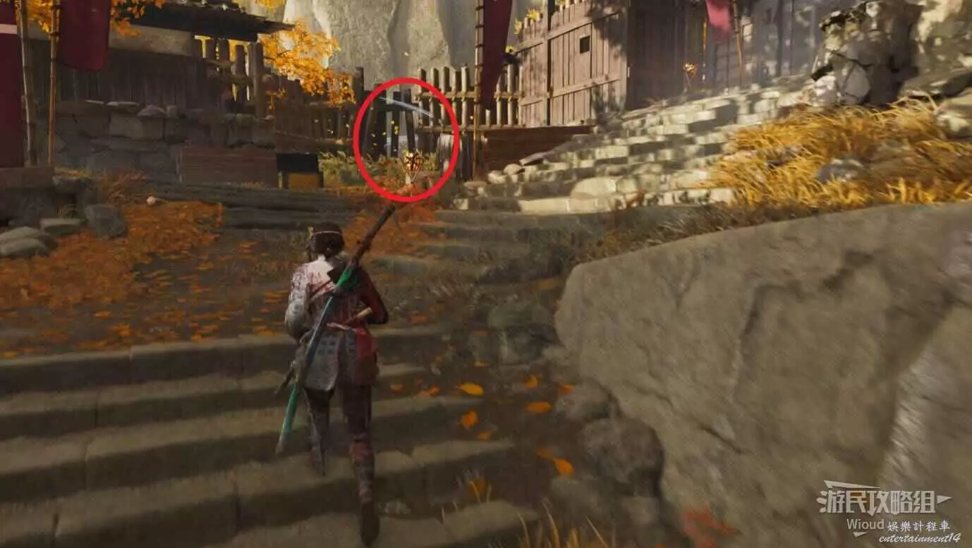 將敵人全幹掉,過完劇情點燃旁邊篝火,然後爬到後面和大治郎互動。
