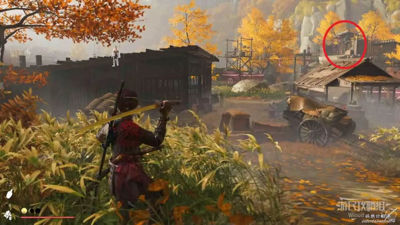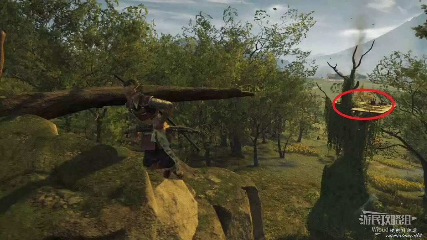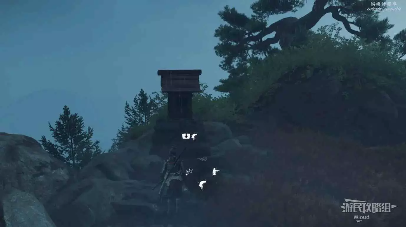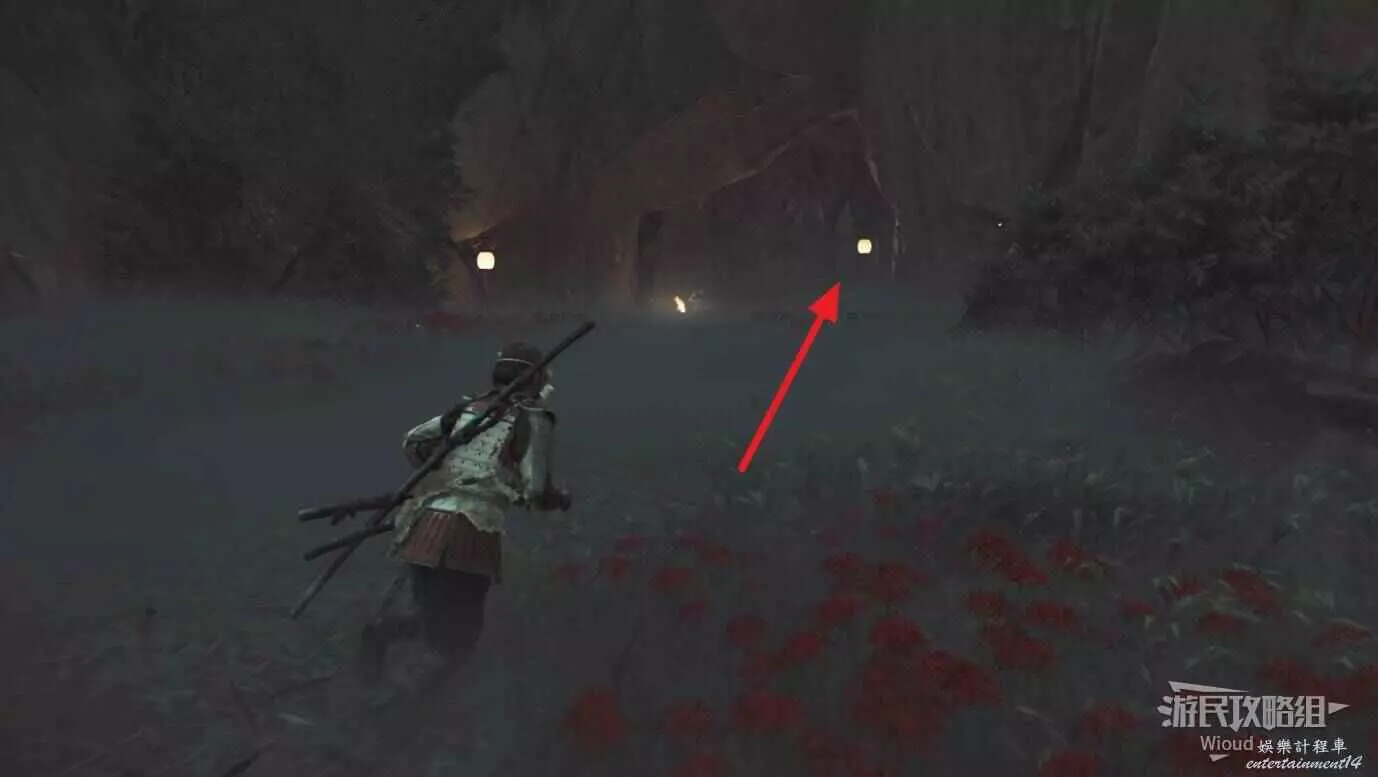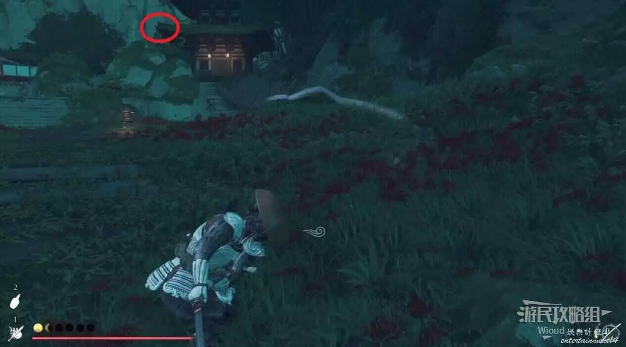 將敵人全幹掉,過完劇情點燃旁邊篝火,然後爬到後面和大治郎互動。