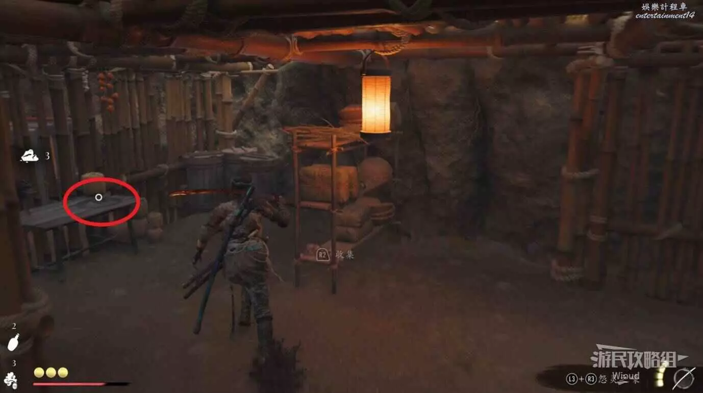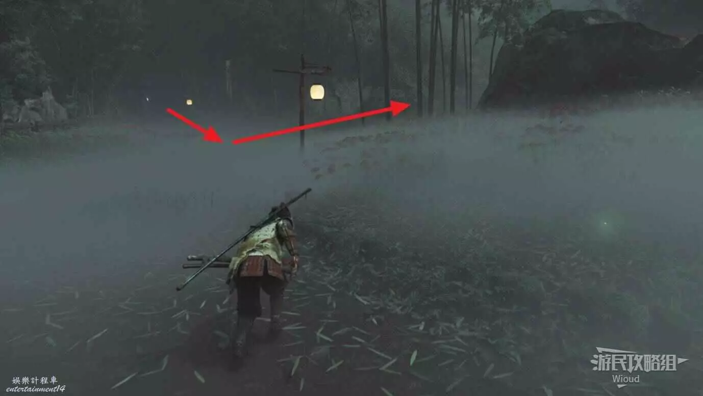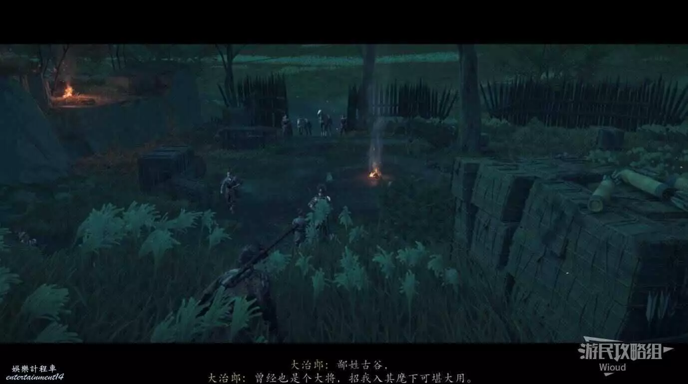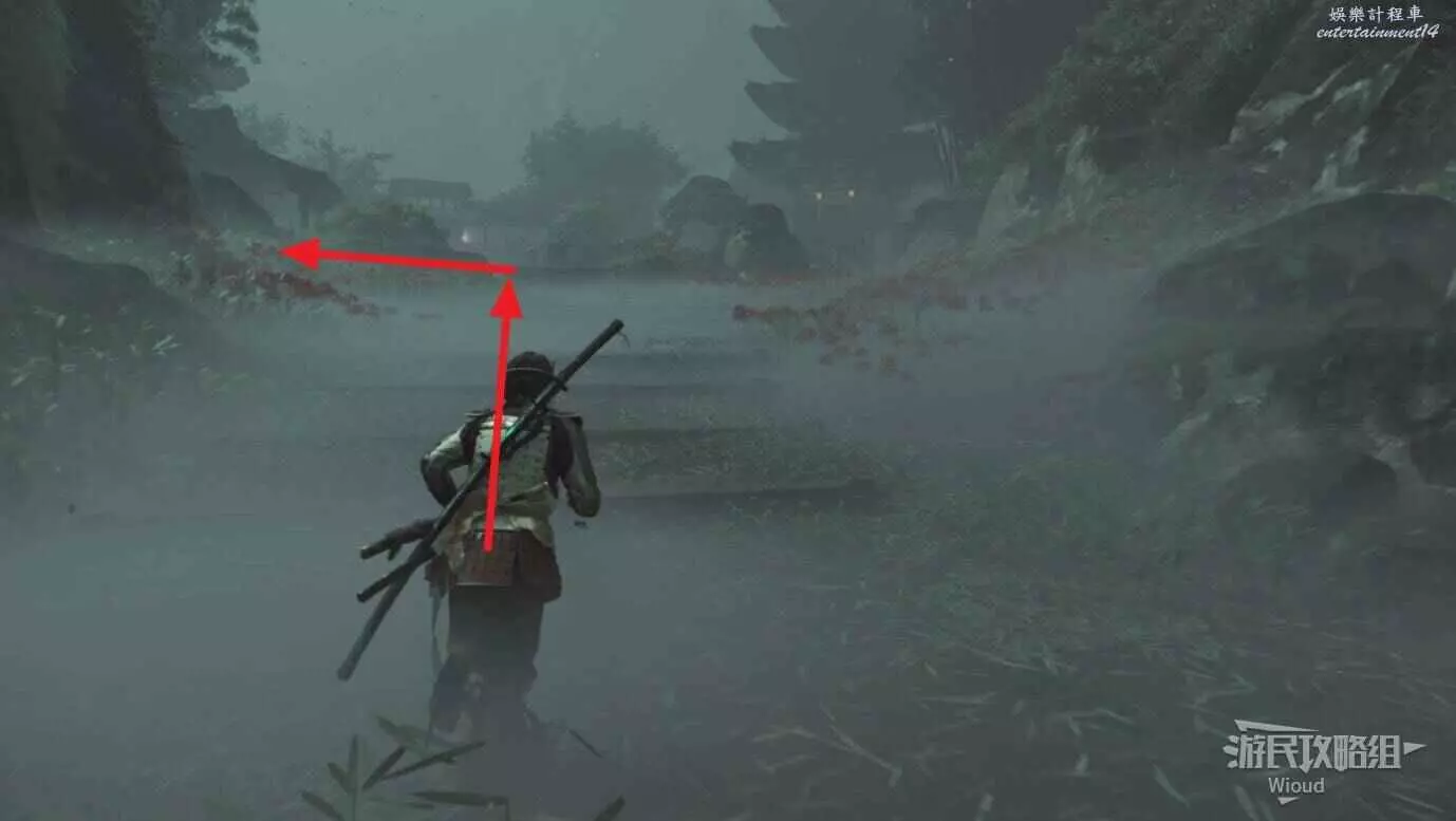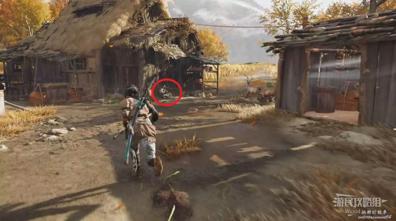 將敵人全幹掉,過完劇情點燃旁邊篝火,然後爬到後面和大治郎互動。