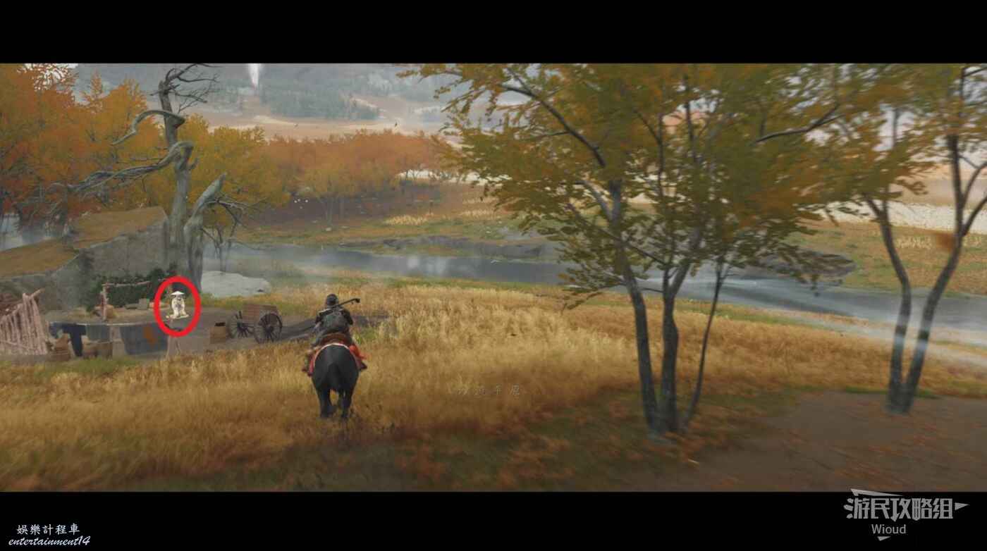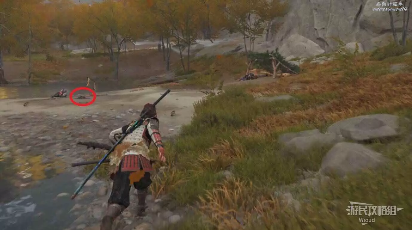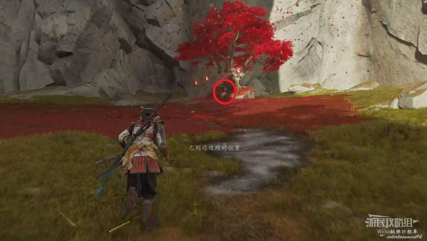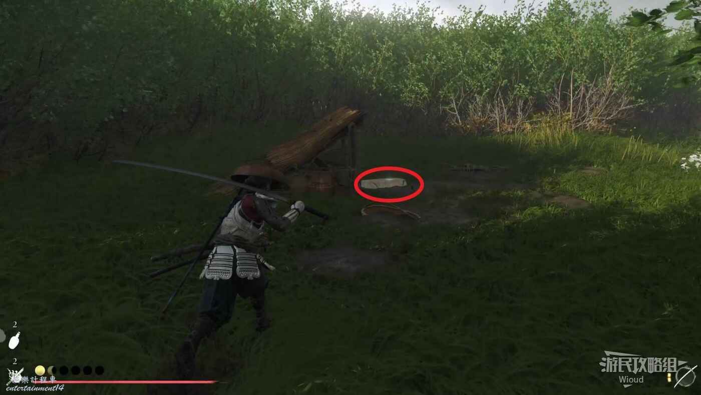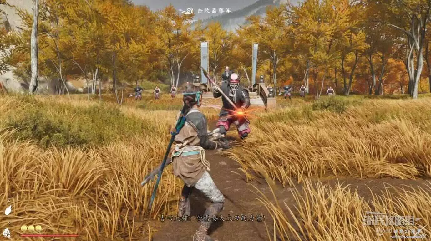 敵人就在樹下等著,靠近觸發戰鬥,將其擊敗獲得【武藏之頑抗護身符】。