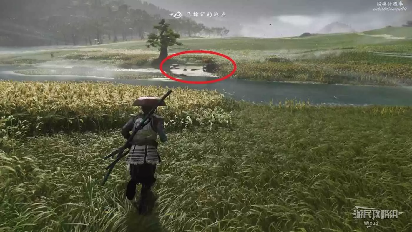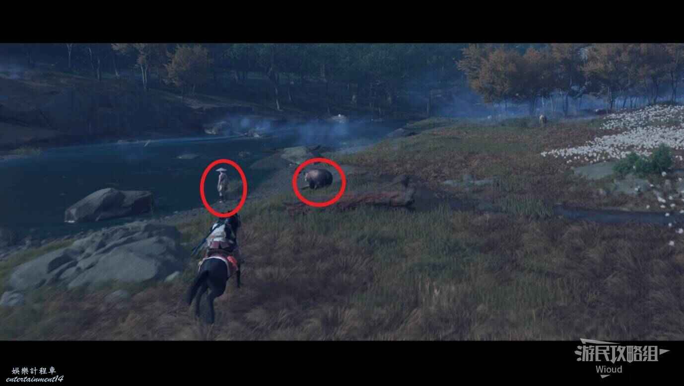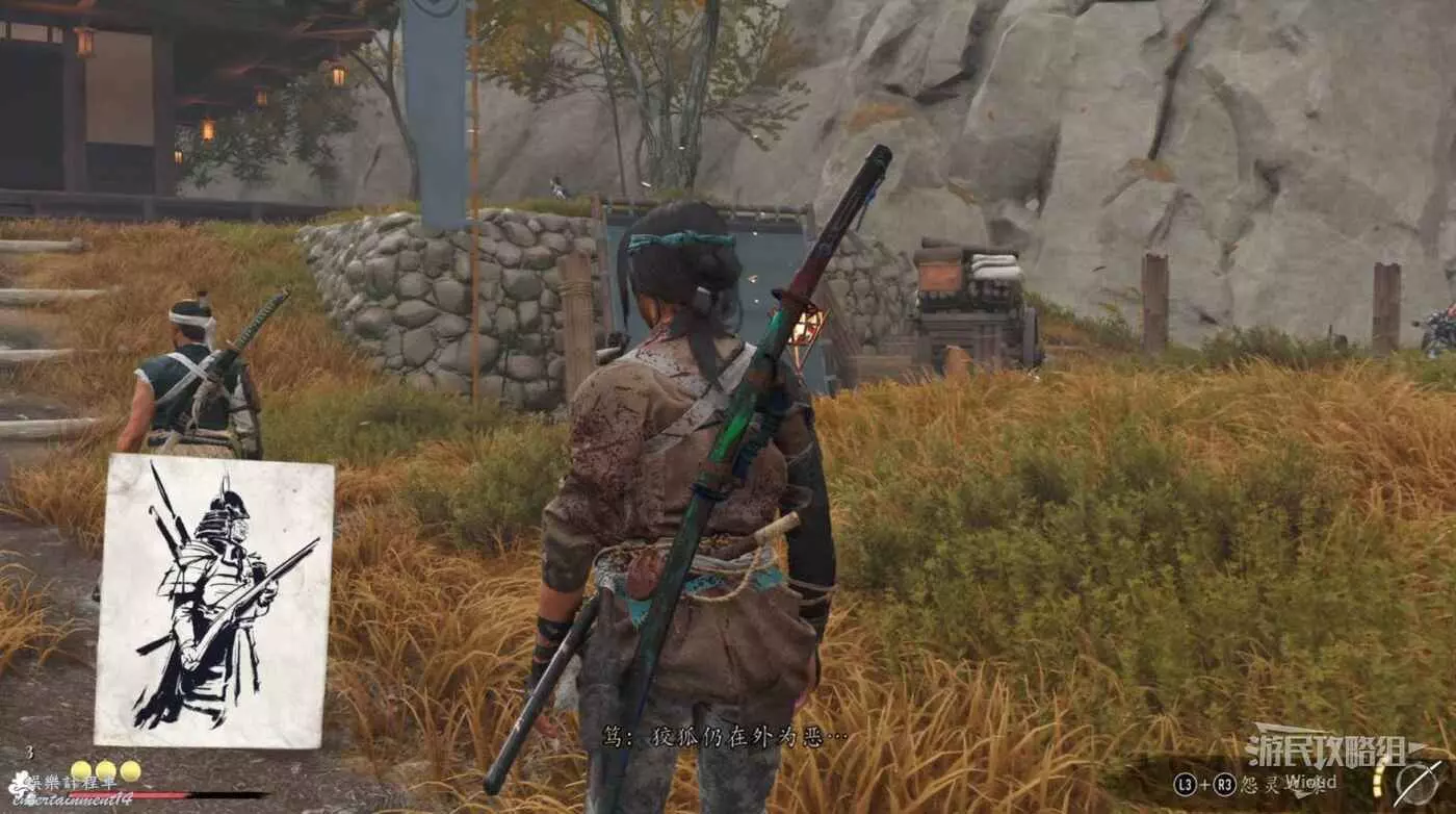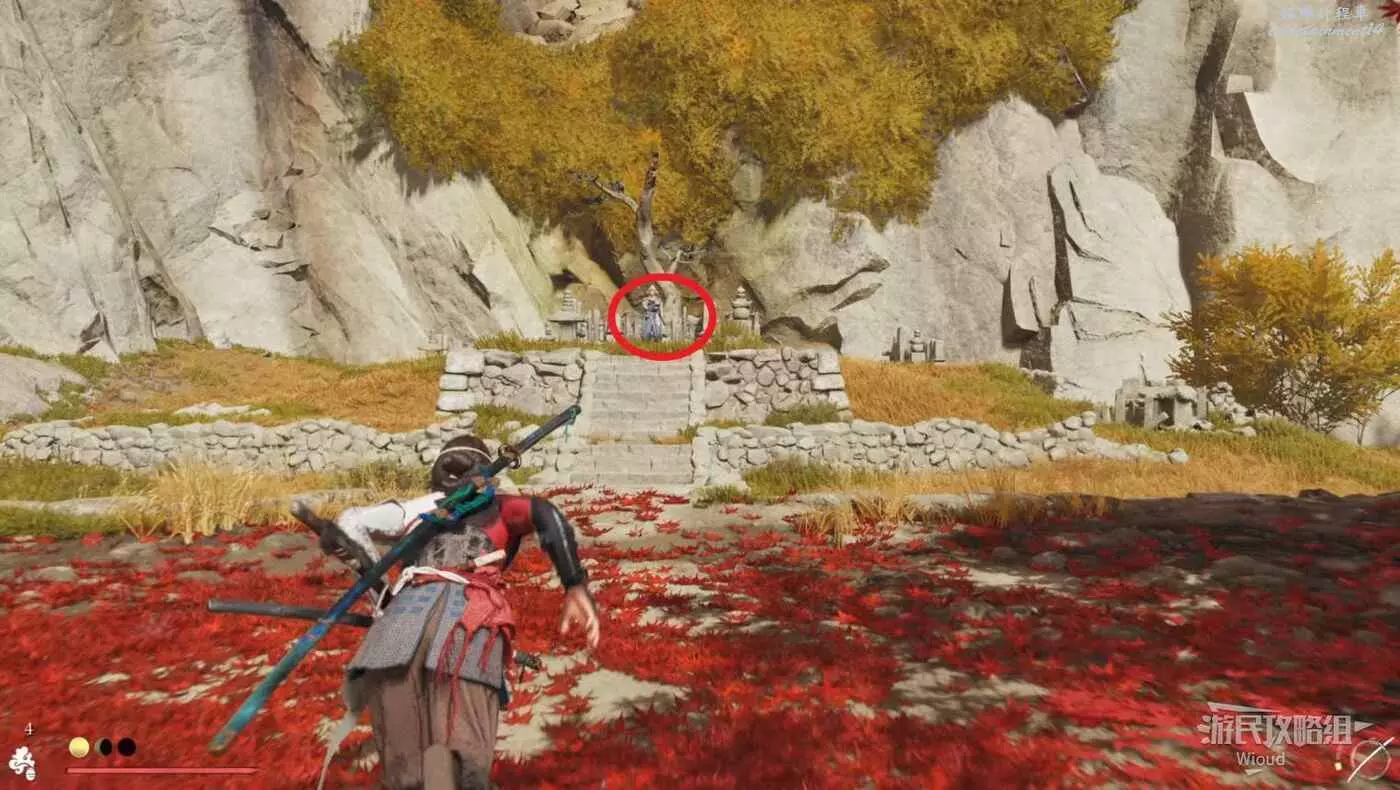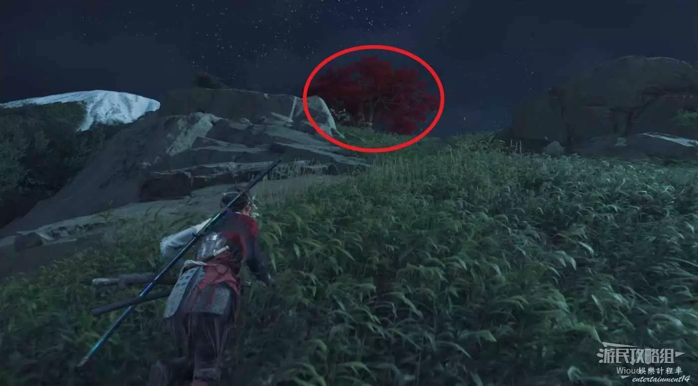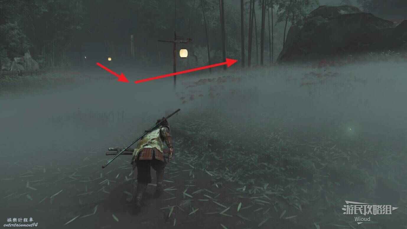 敵人就在樹下等著,靠近觸發戰鬥,將其擊敗獲得【武藏之頑抗護身符】。