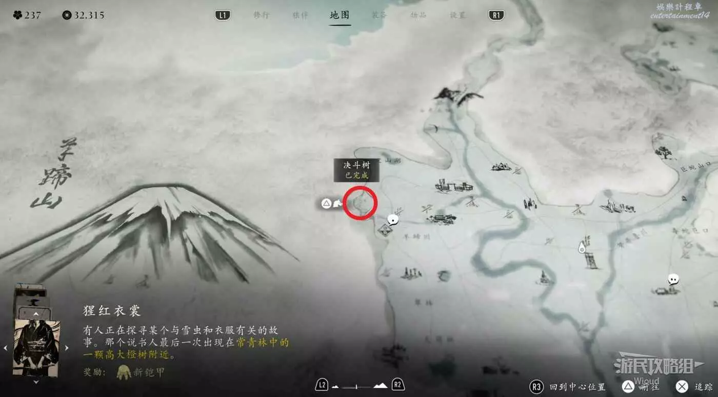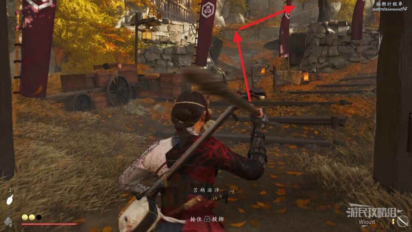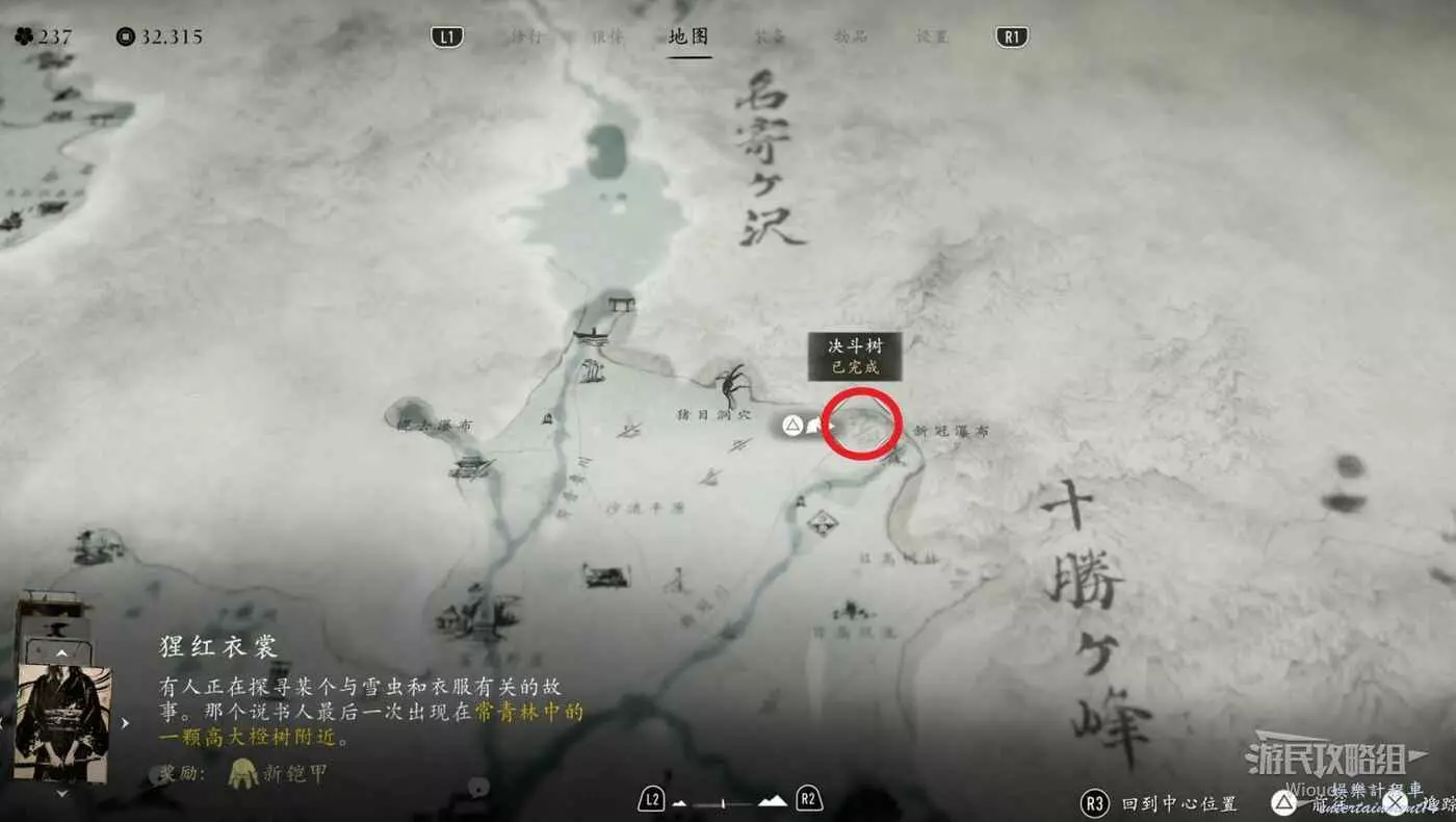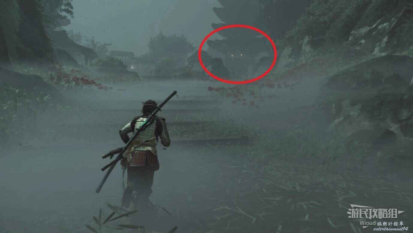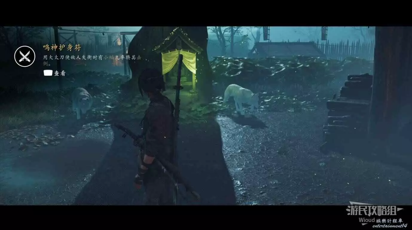 敵人就在樹下等著,靠近觸發戰鬥,將其擊敗獲得【武藏之頑抗護身符】。