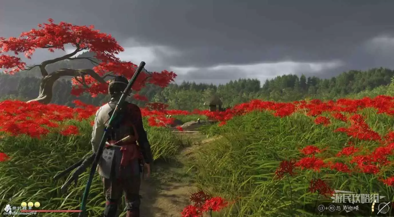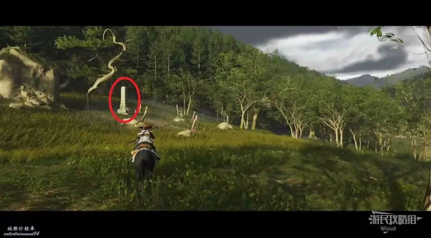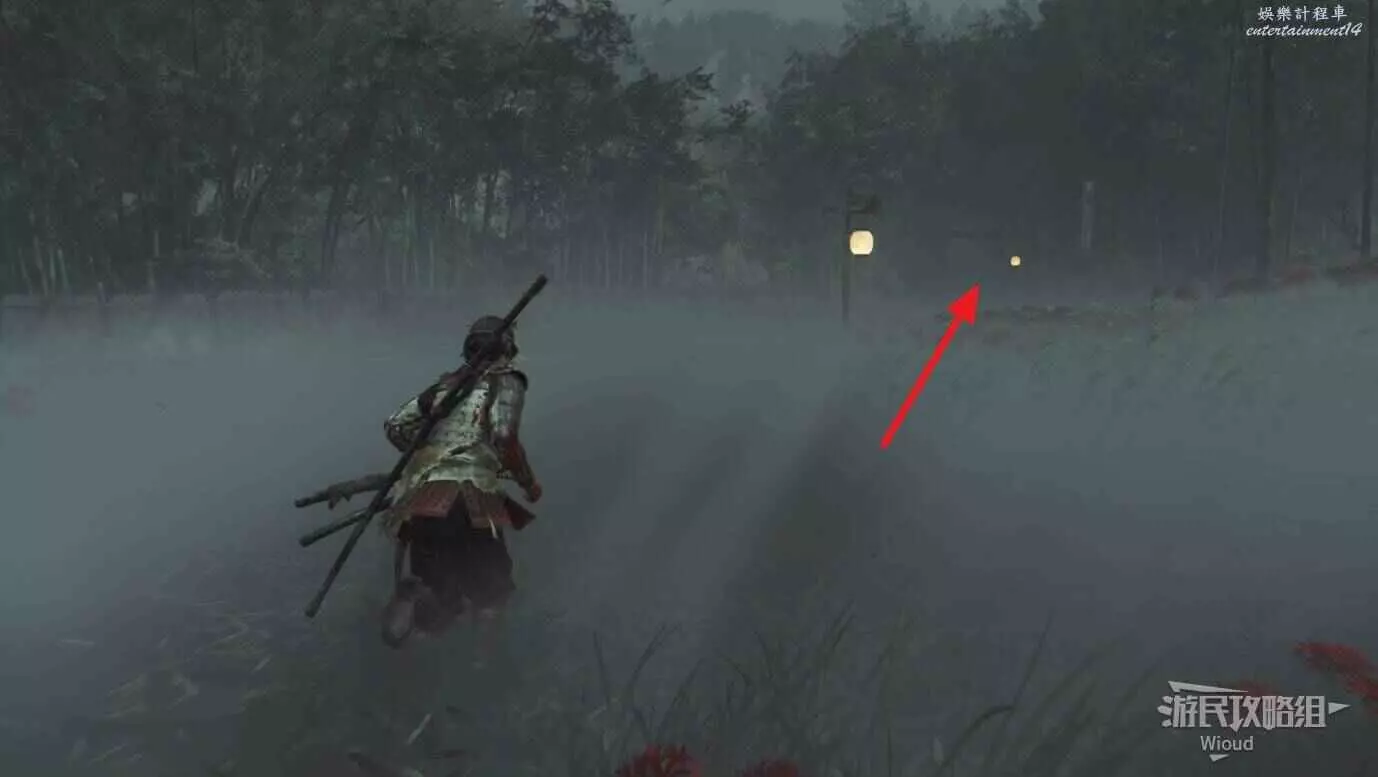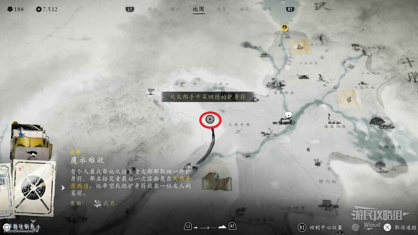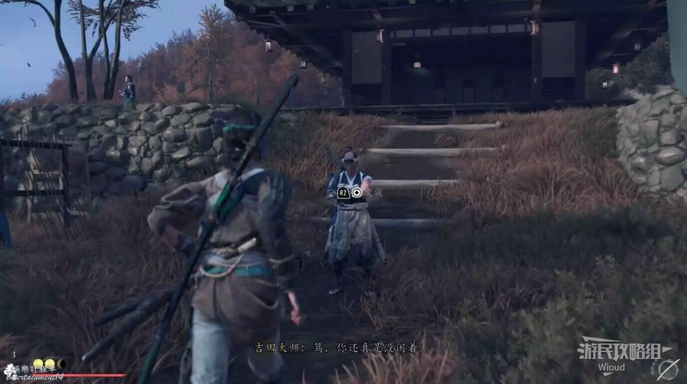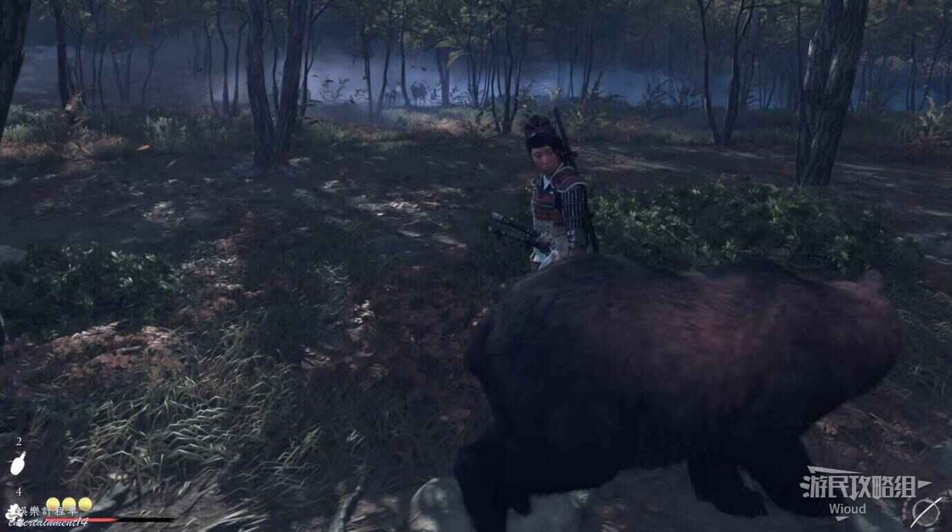 敵人就在樹下等著,靠近觸發戰鬥,將其擊敗獲得【武藏之頑抗護身符】。