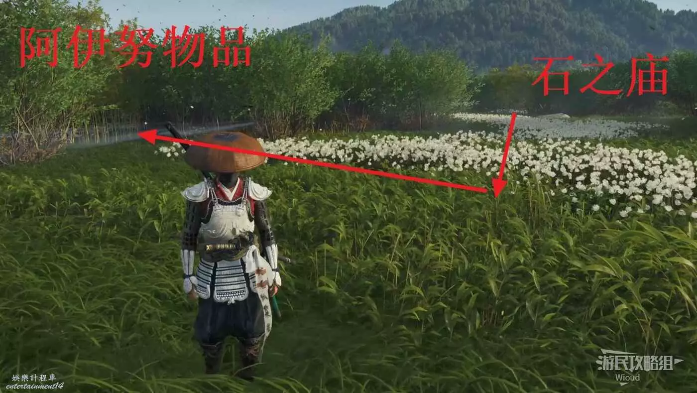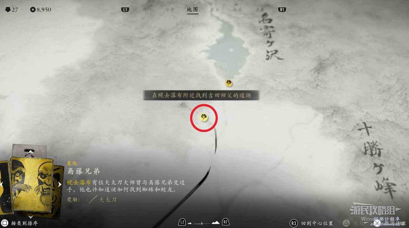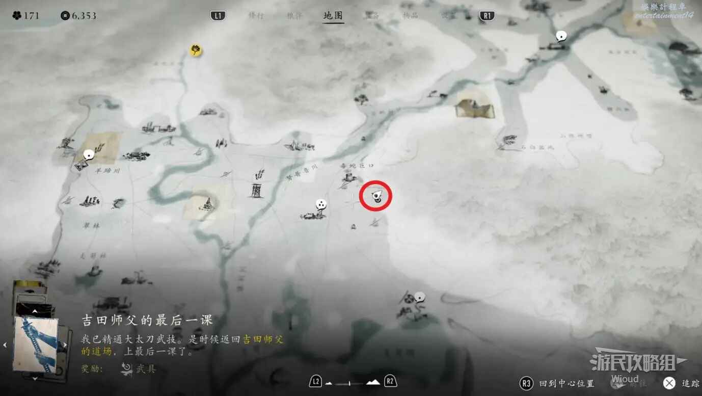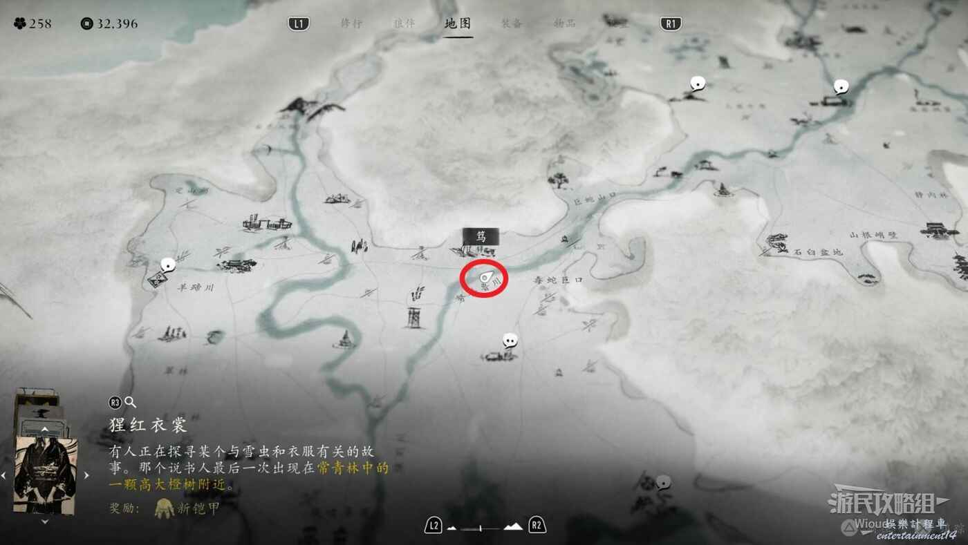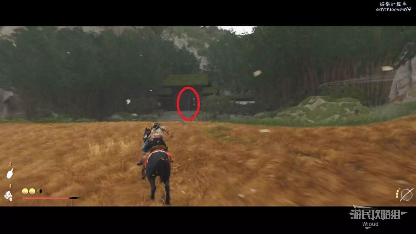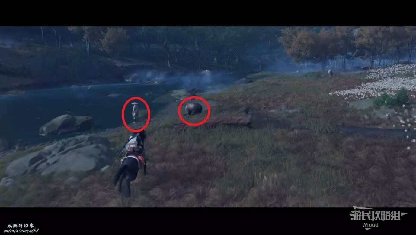 敵人就在樹下等著,靠近觸發戰鬥,將其擊敗獲得【武藏之頑抗護身符】。