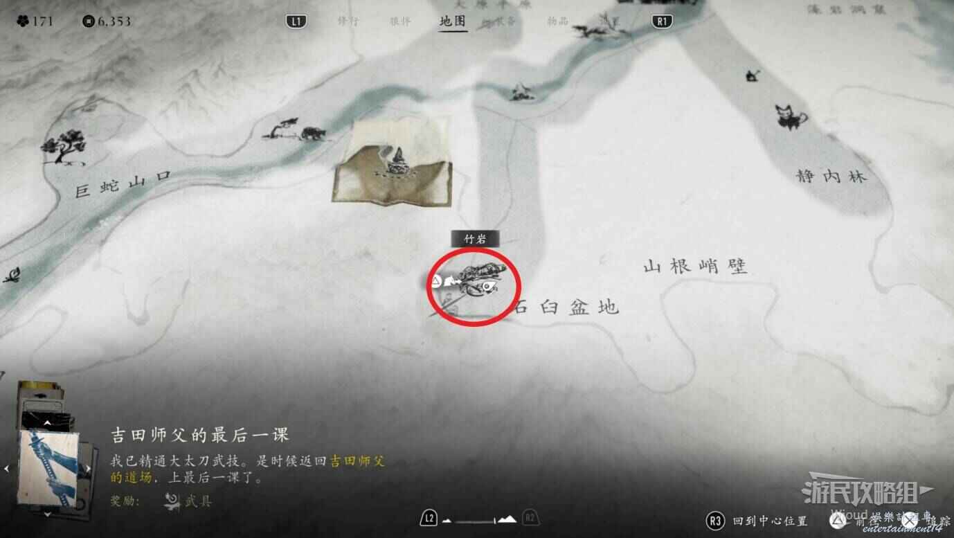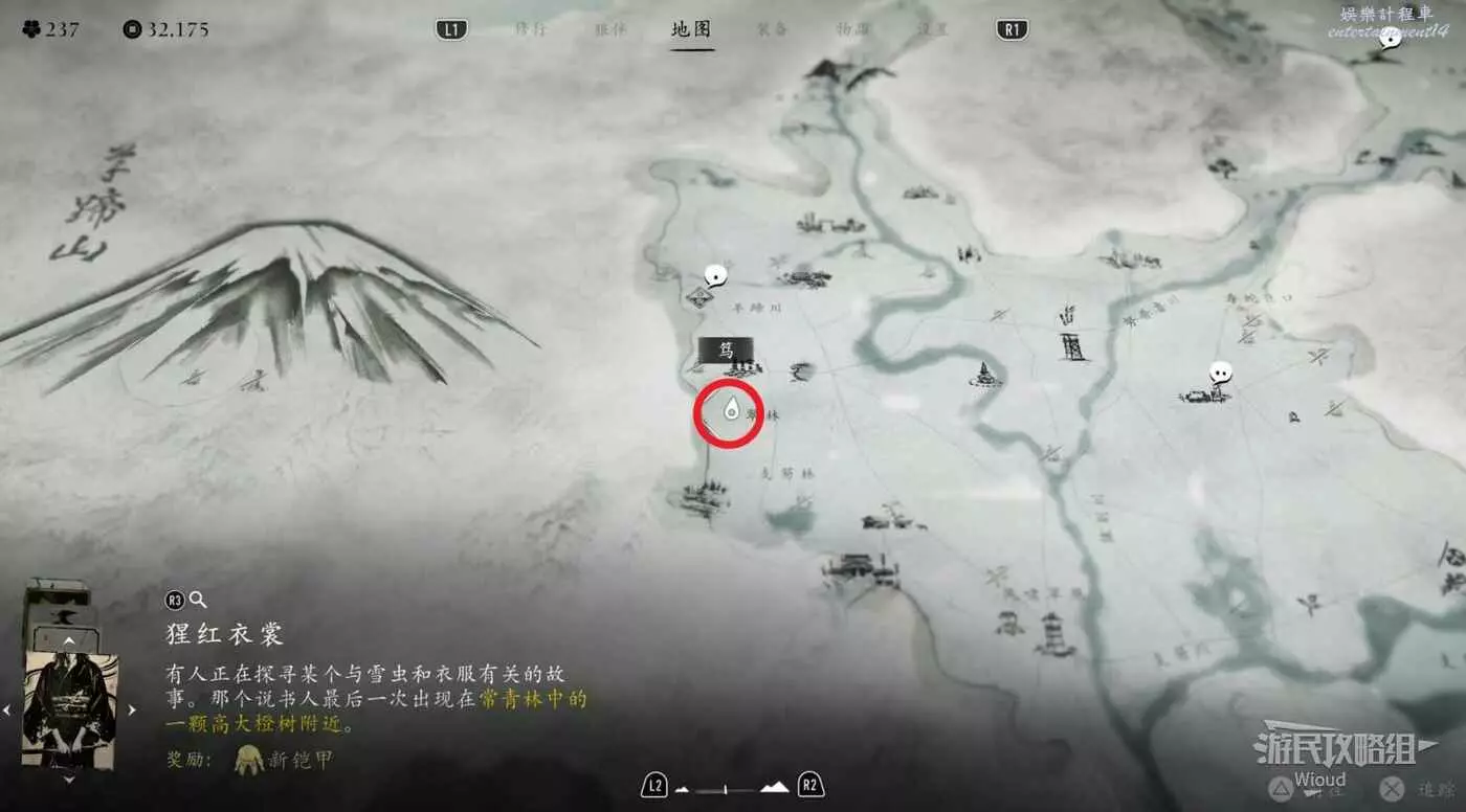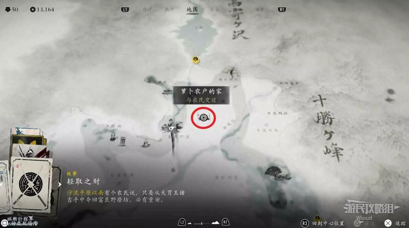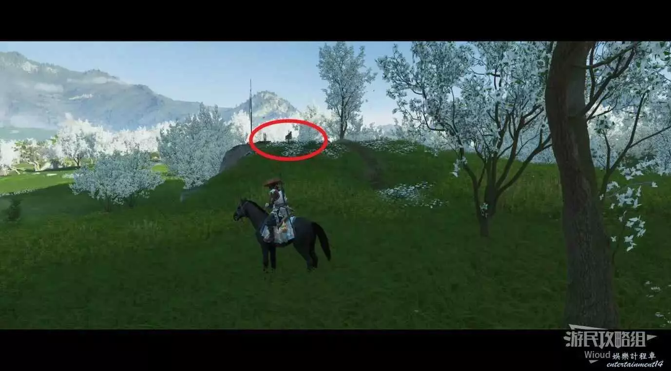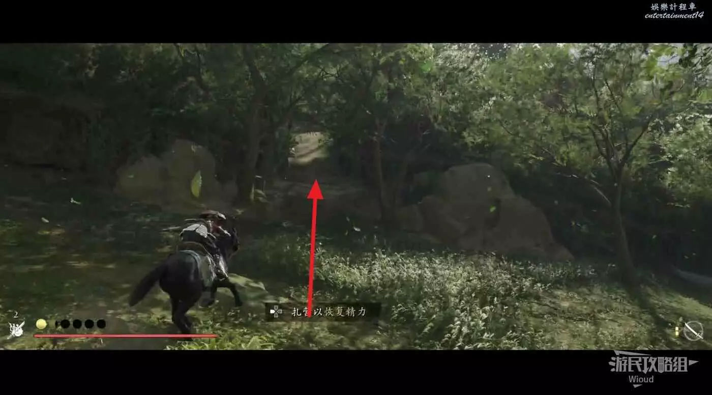 敵人就在樹下等著,靠近觸發戰鬥,將其擊敗獲得【武藏之頑抗護身符】。