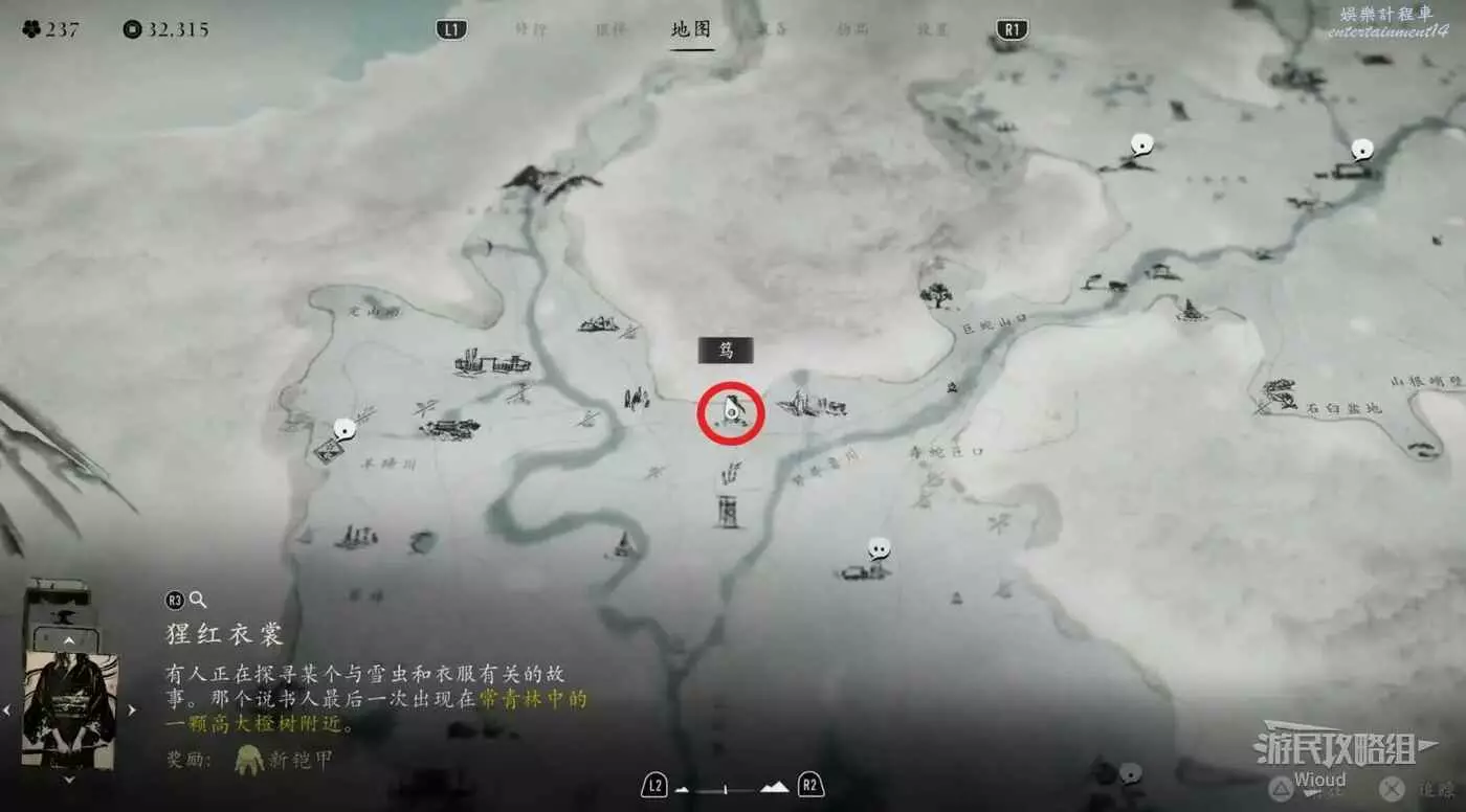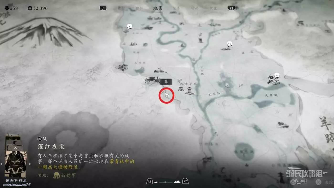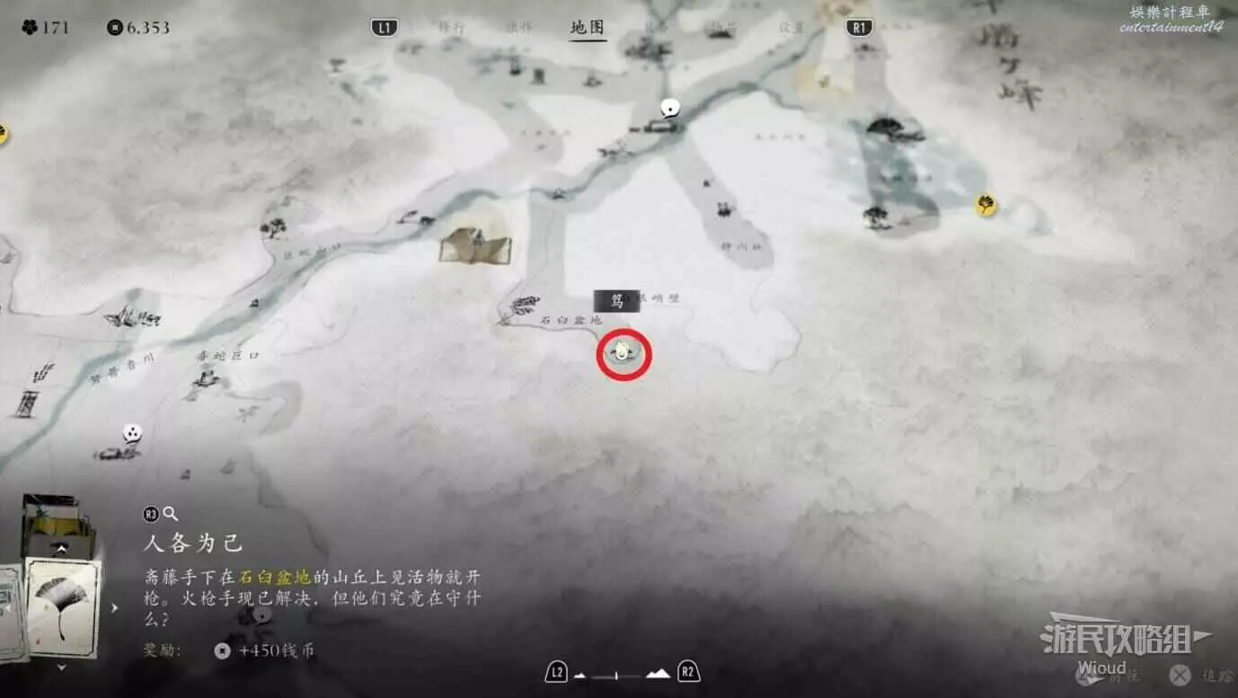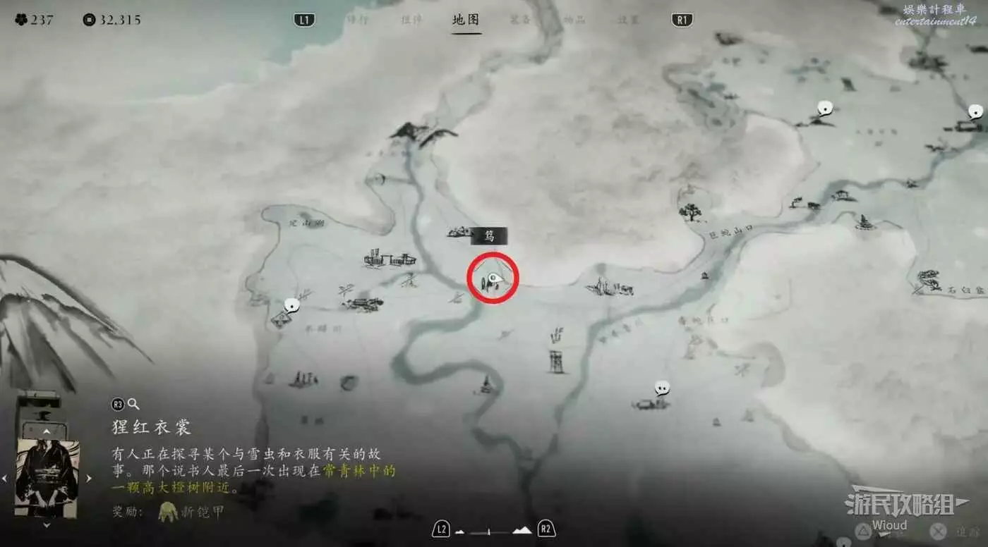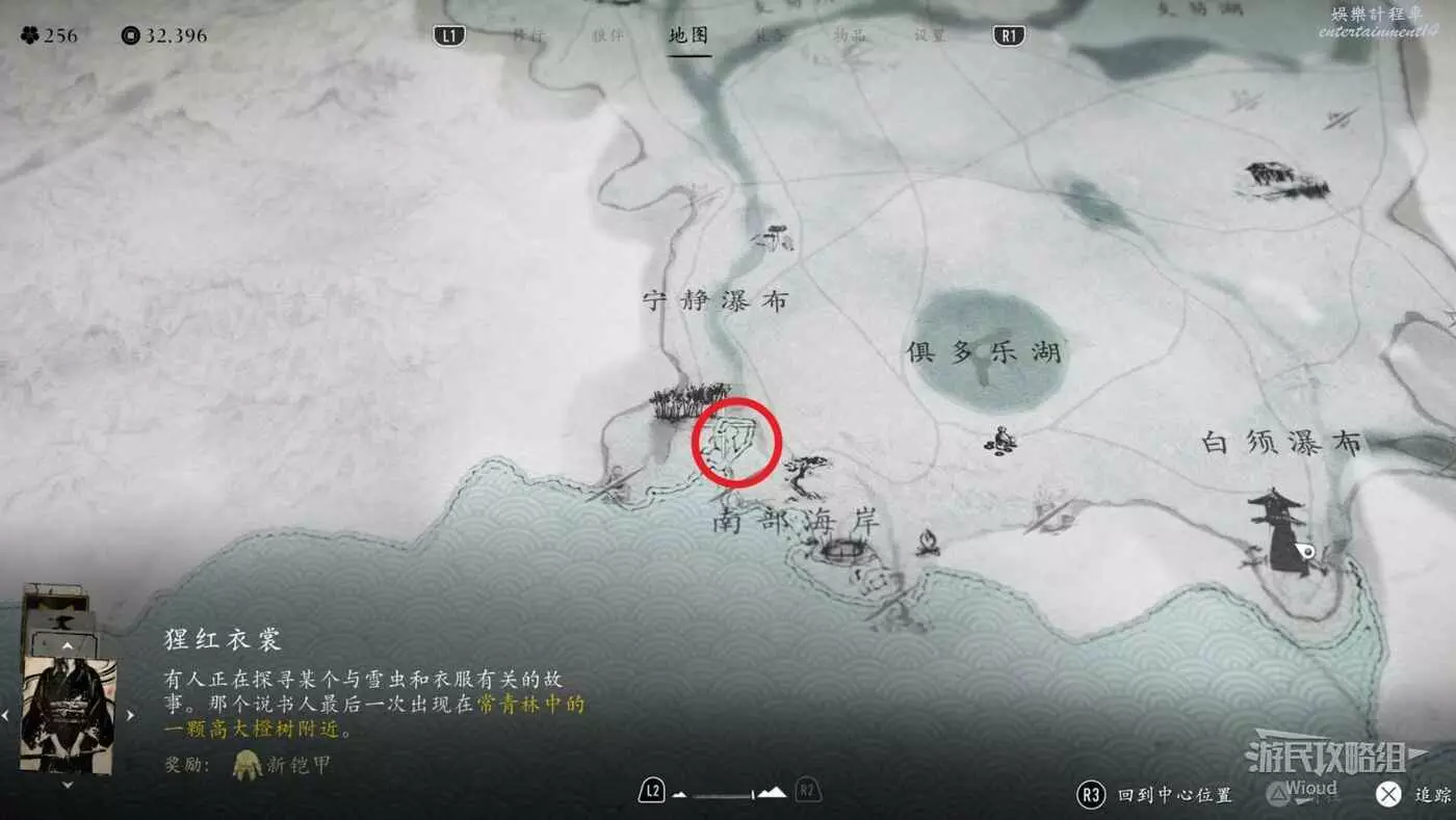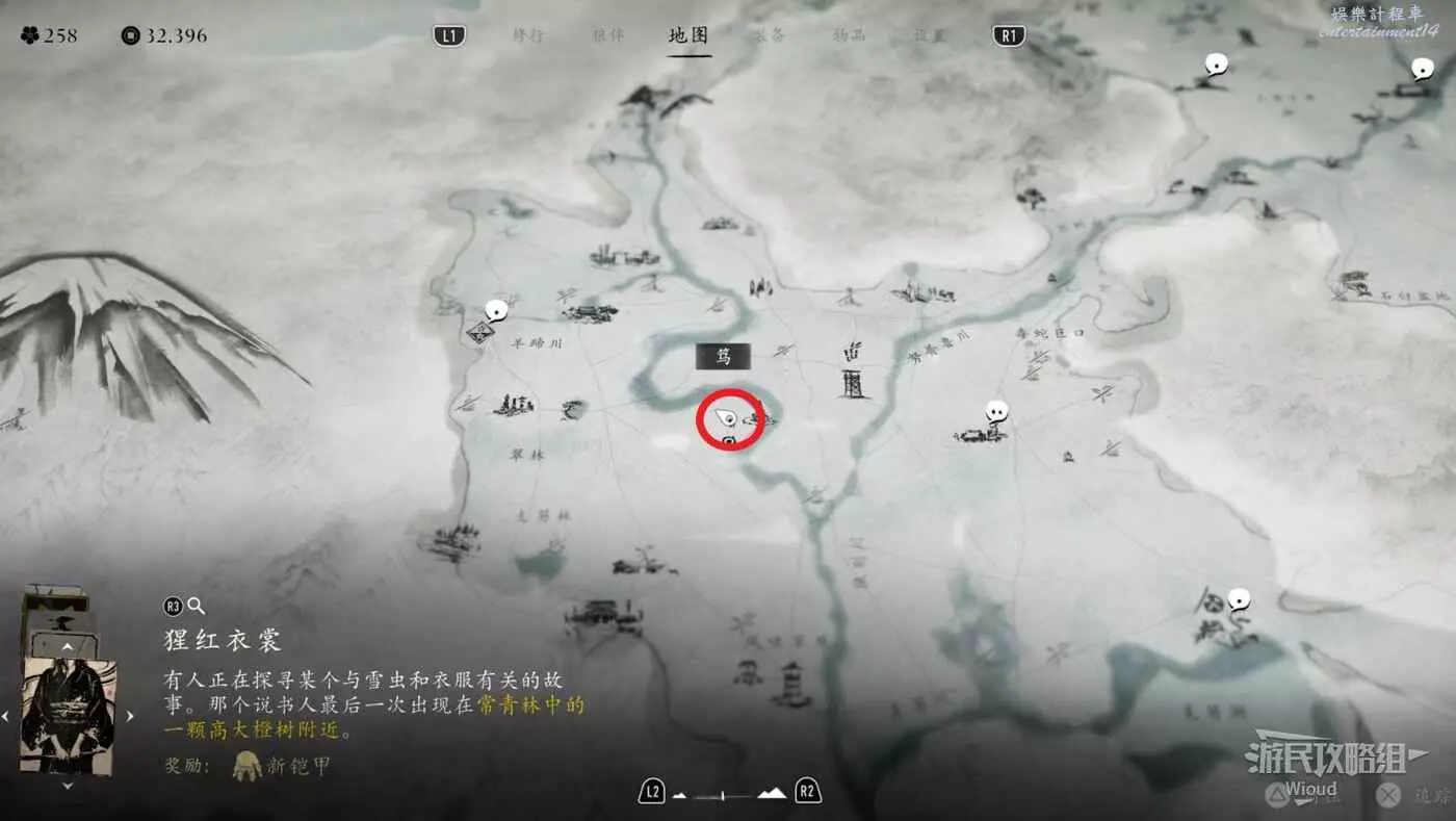敵人就在樹下等著,靠近觸發戰鬥,將其擊敗獲得【武藏之頑抗護身符】。