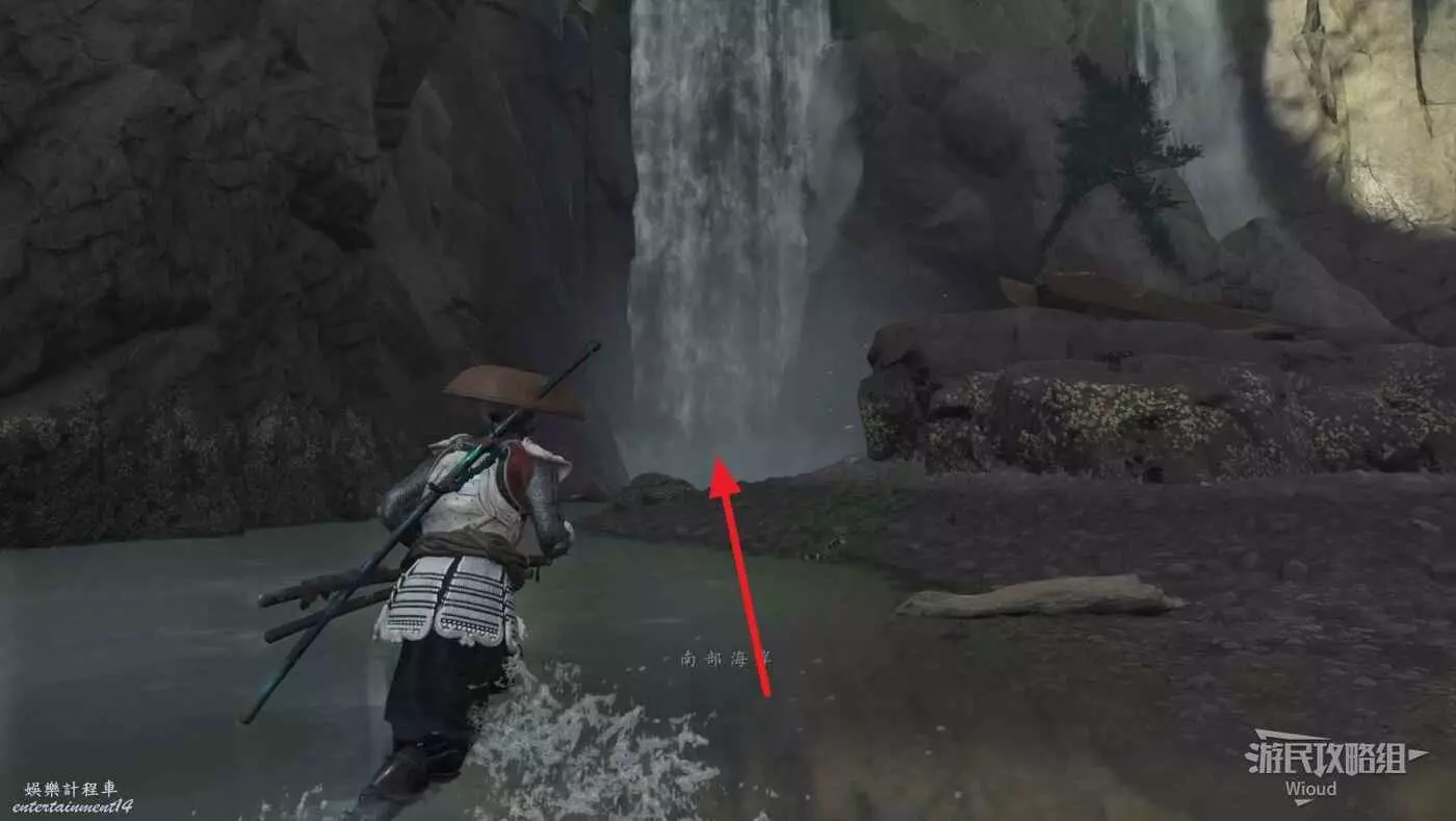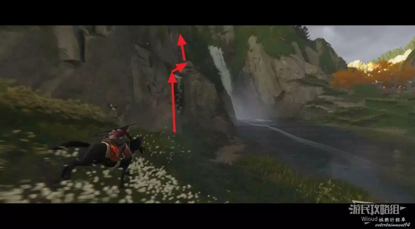 來到目的地會看到一個巨大的瀑布,下馬走進瀑布裡開啟裡面的寶箱獲得這個面具。
