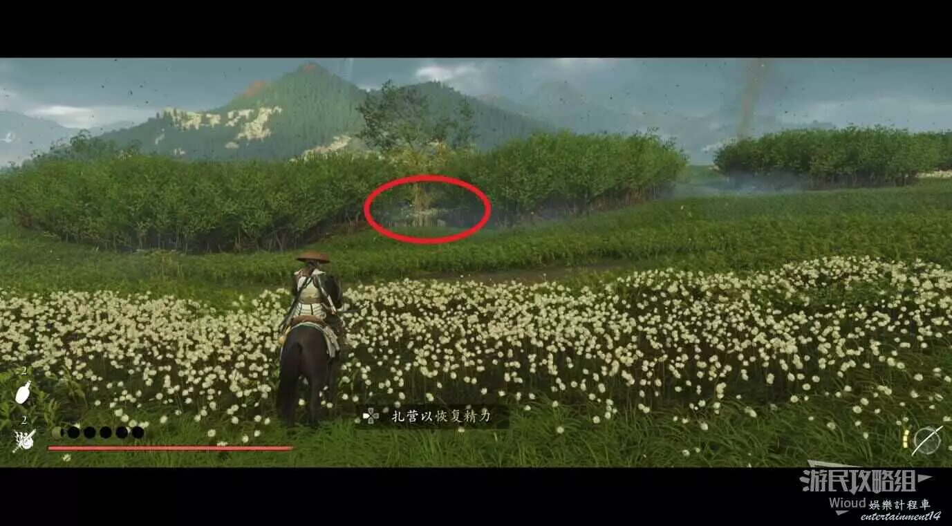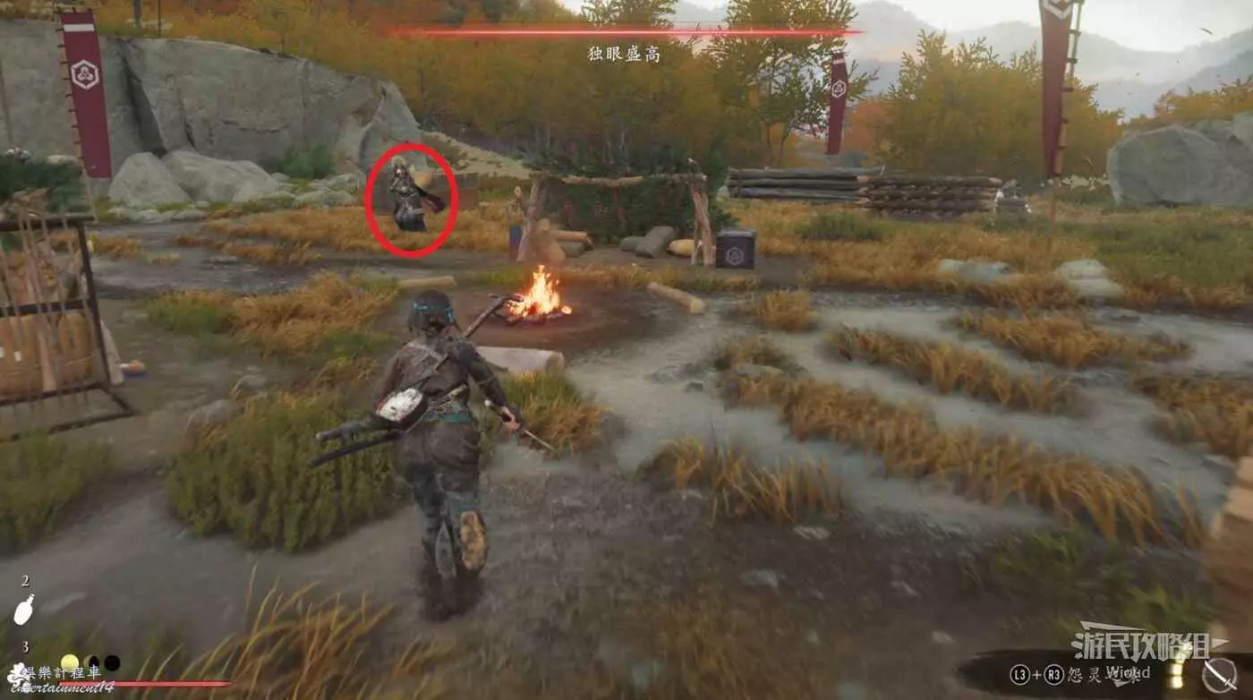 這個營地很小,獨眼盛高是一個拿弓的敵人,注意穿武士鎧甲的遠程敵人即可。
