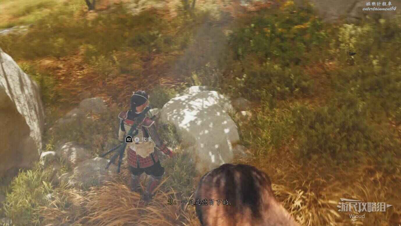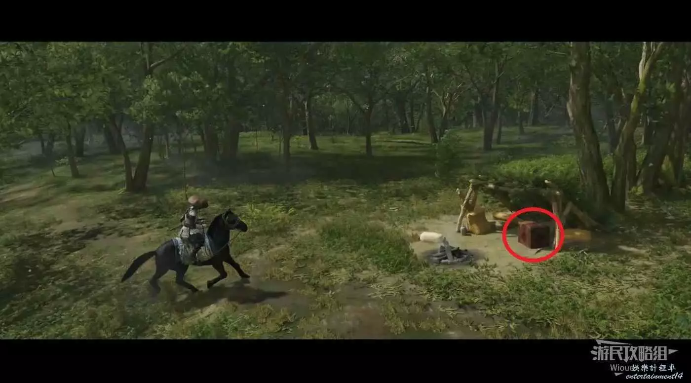 目的地有個營地,在營地中間的石頭上拿到這個物品。