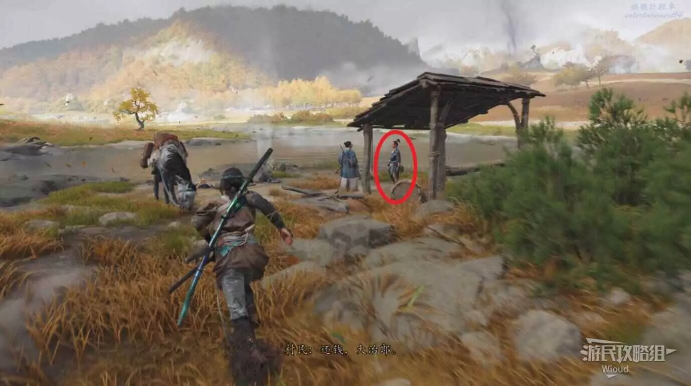 目的地河邊找到一個被村名逼著還錢的大治郎。