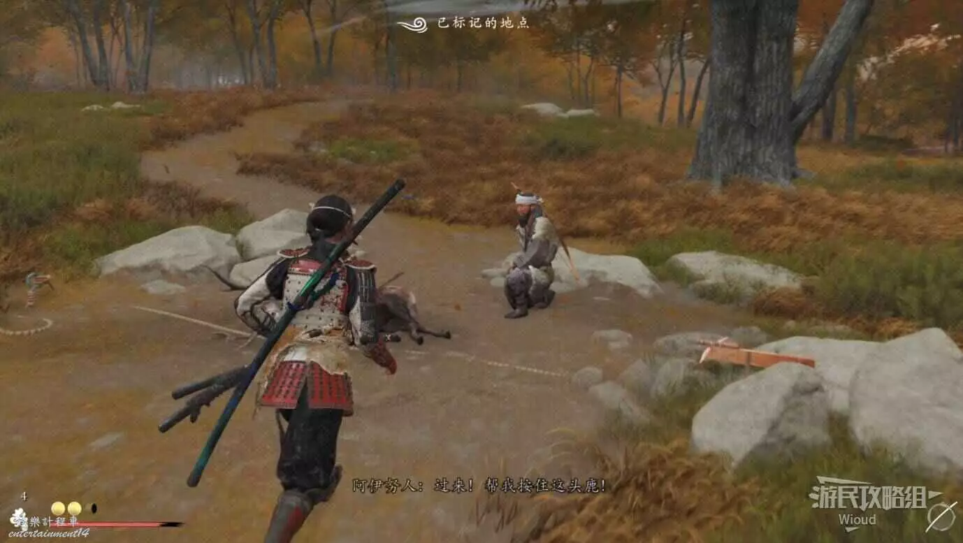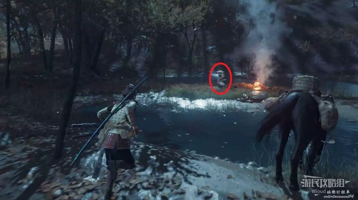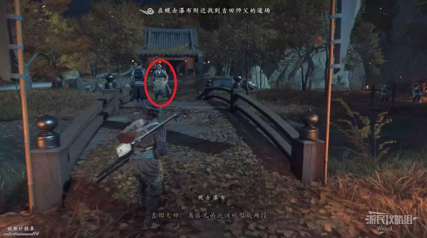 劇情裡這個身著武士鎧甲的便是我們要找的目標,等劇情結束將他幹掉即可。