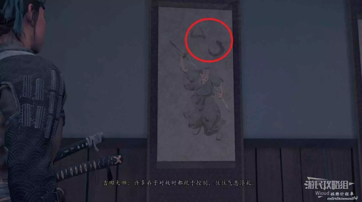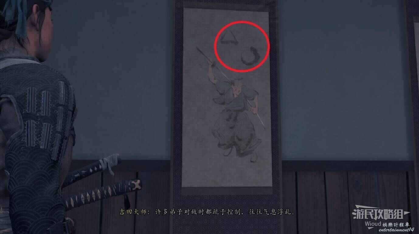 傳送到道場和吉田對話,限時選項選啥都行,隨後跟著他進屋看三幅畫。