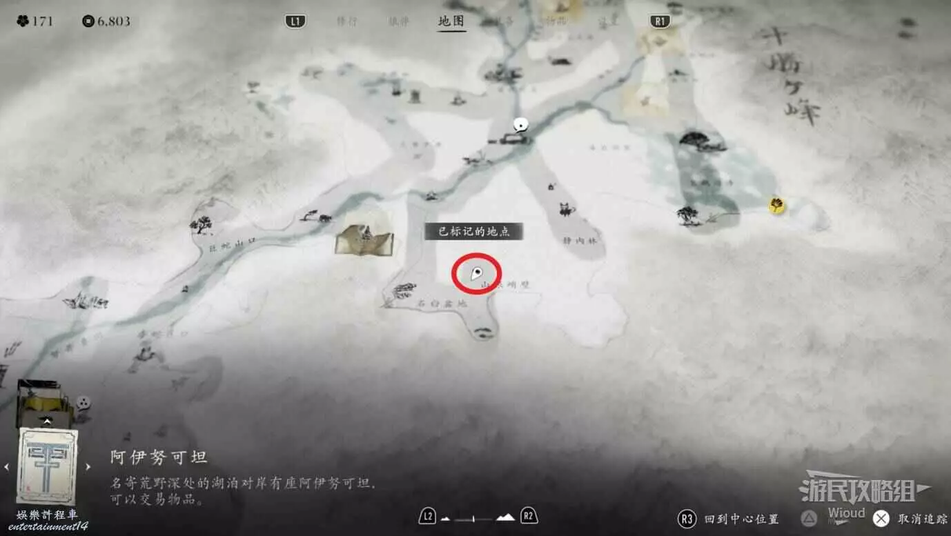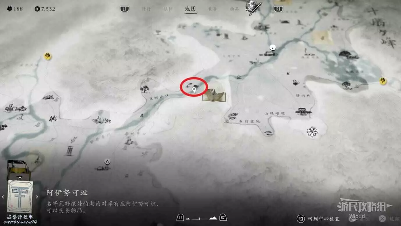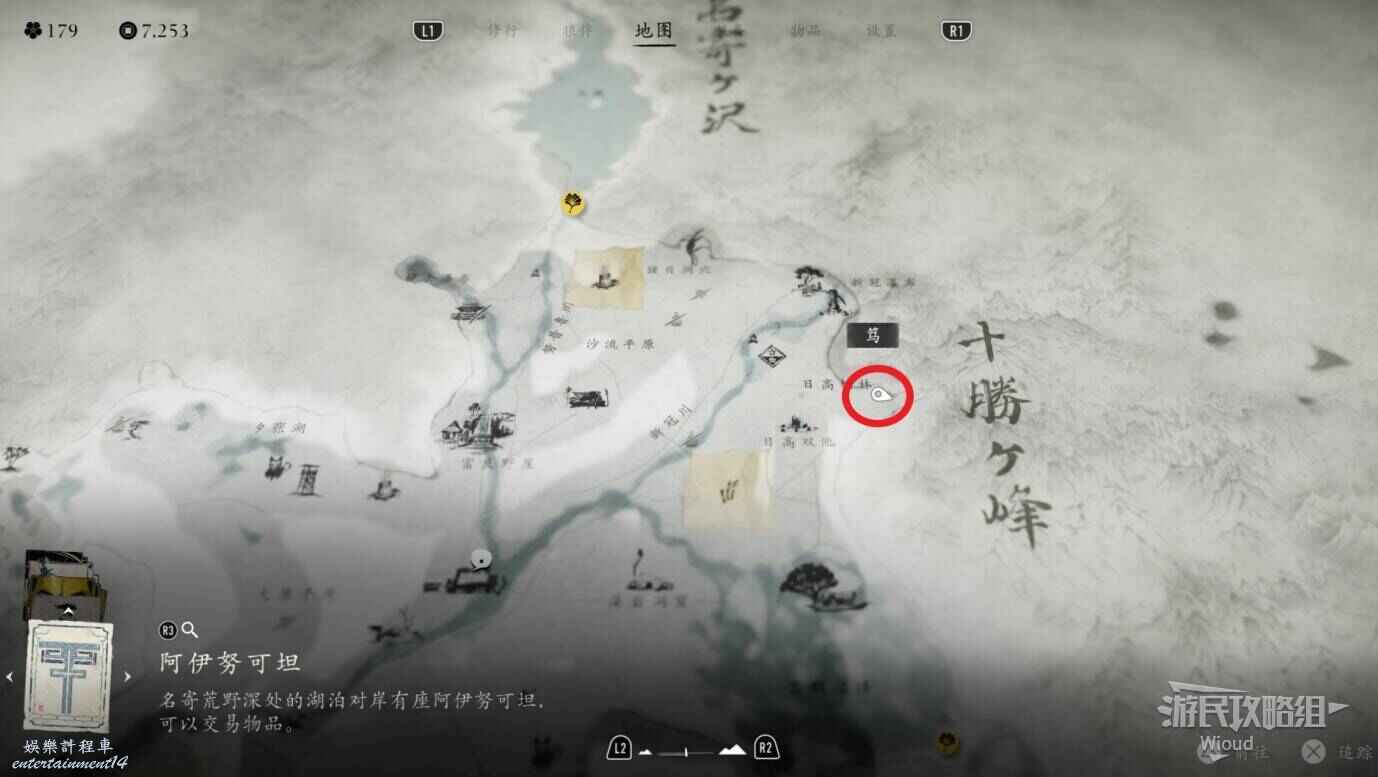 下圖紅圈所示位置可拿到阿伊努物品【卡洛普】。