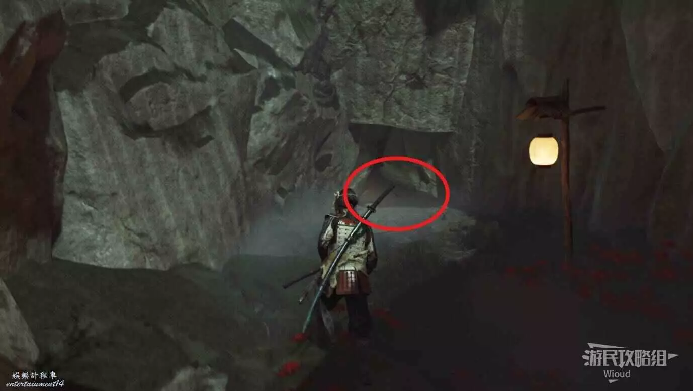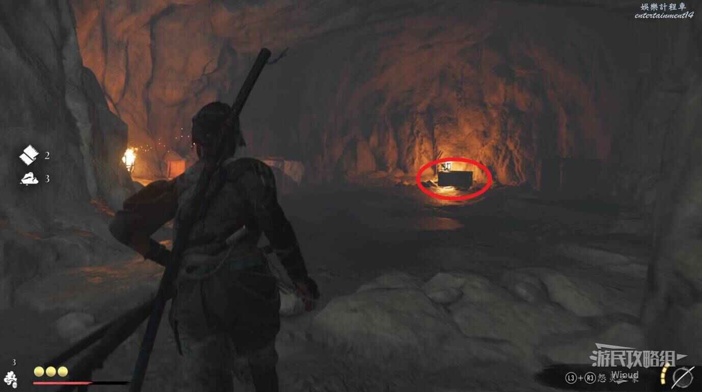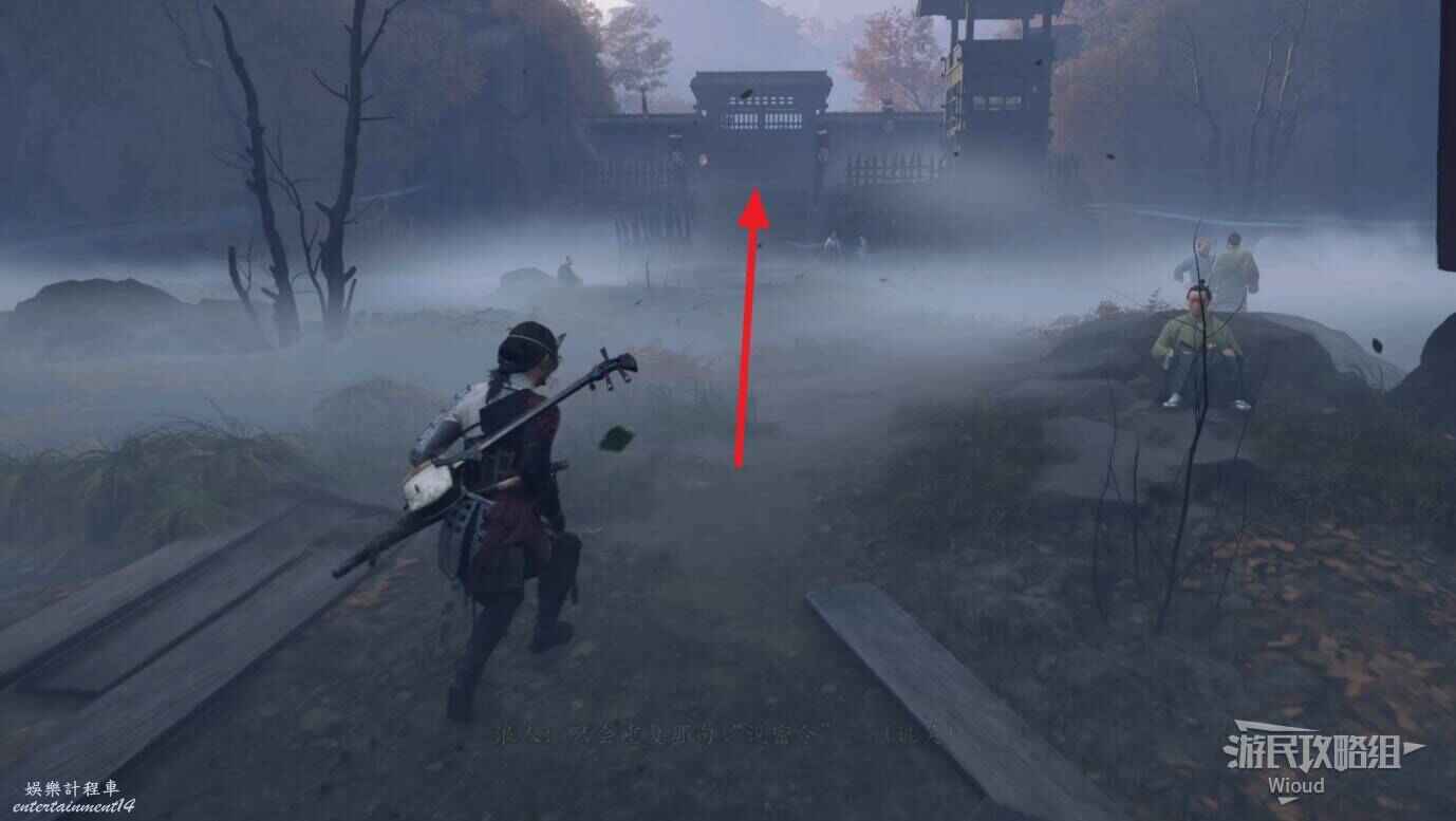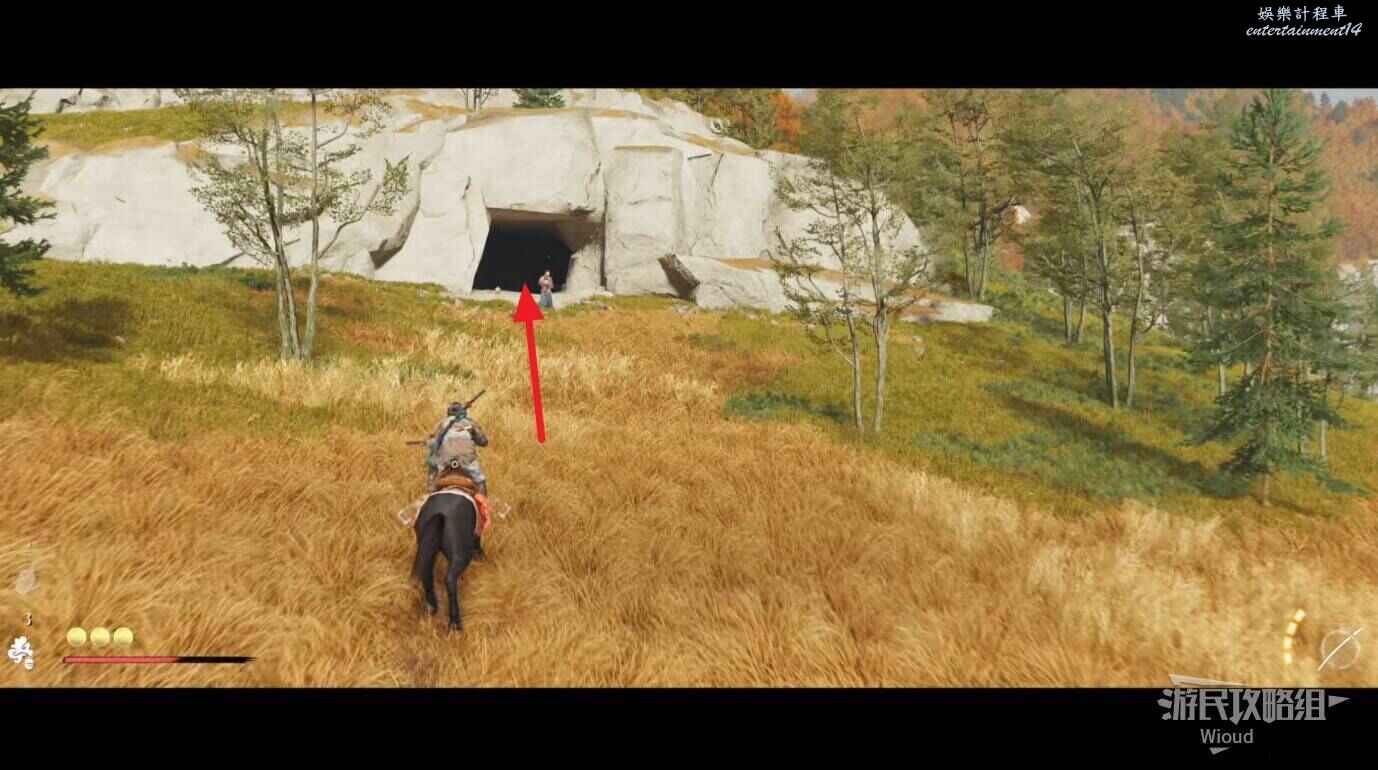 目的地洞口前有個浪人在等待,過去和他對話,一起組隊往裡走。