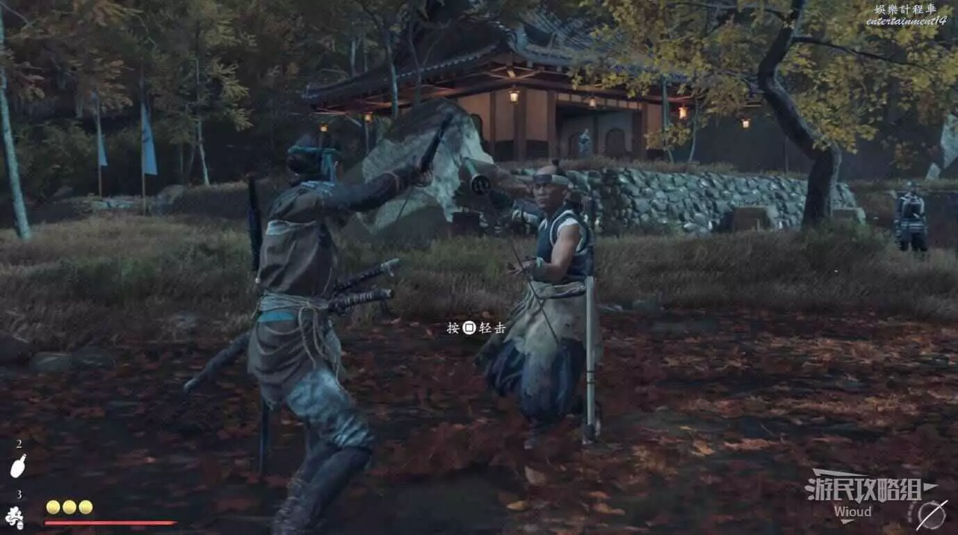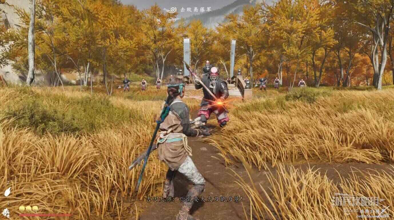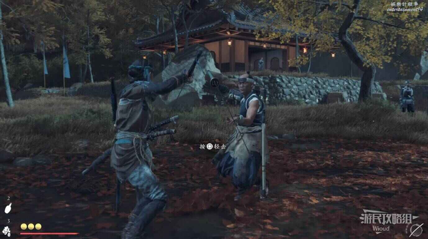 敵人在決鬥樹旁邊的一棵黃樹下面等著,將他擊敗可獲得【武藏之不動心護身符】。
