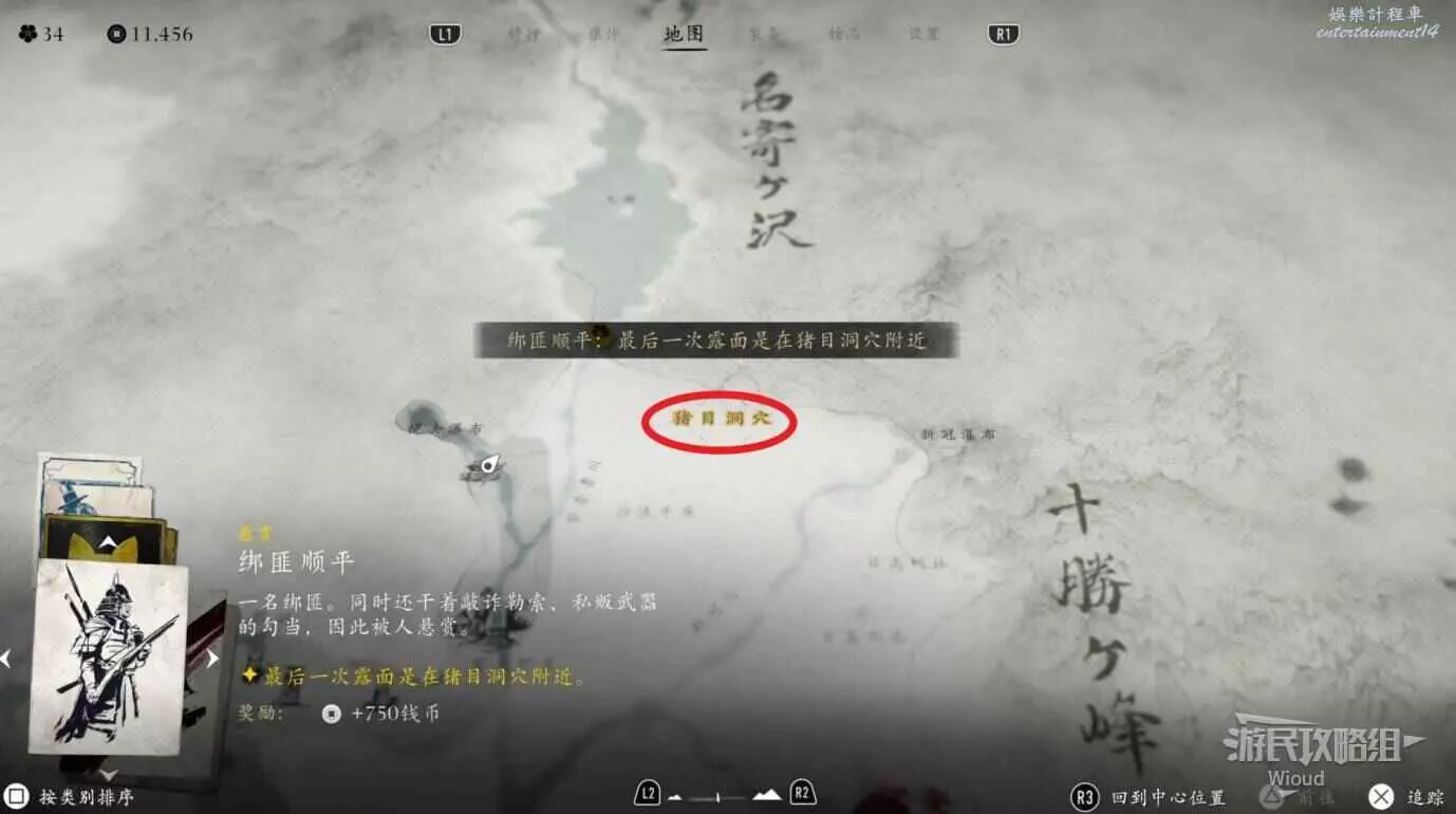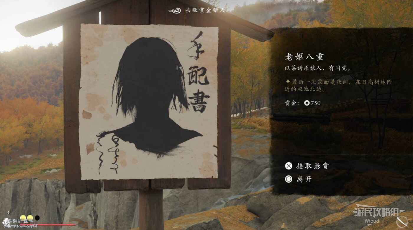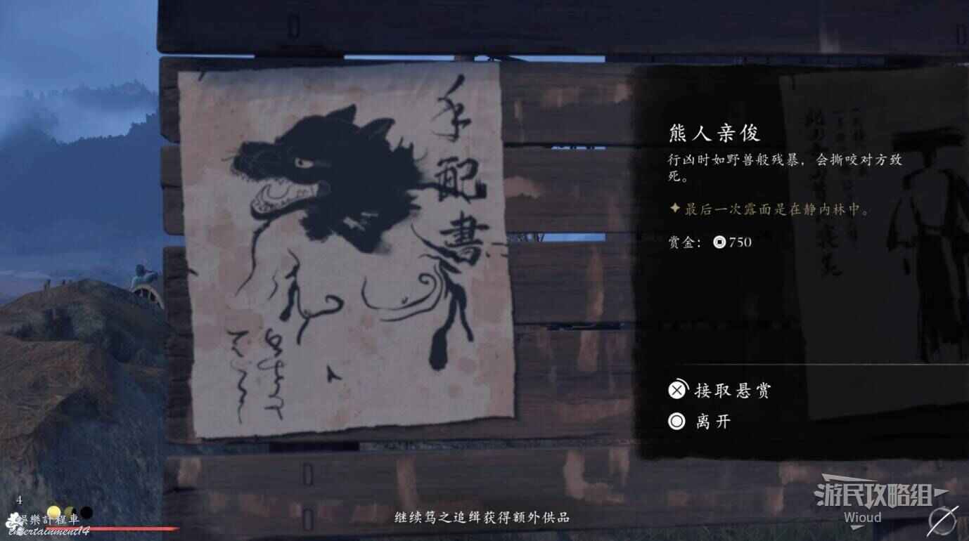 進入營地直走到頭左拐,沿著倒下的原木可直接找到懸賞目標。