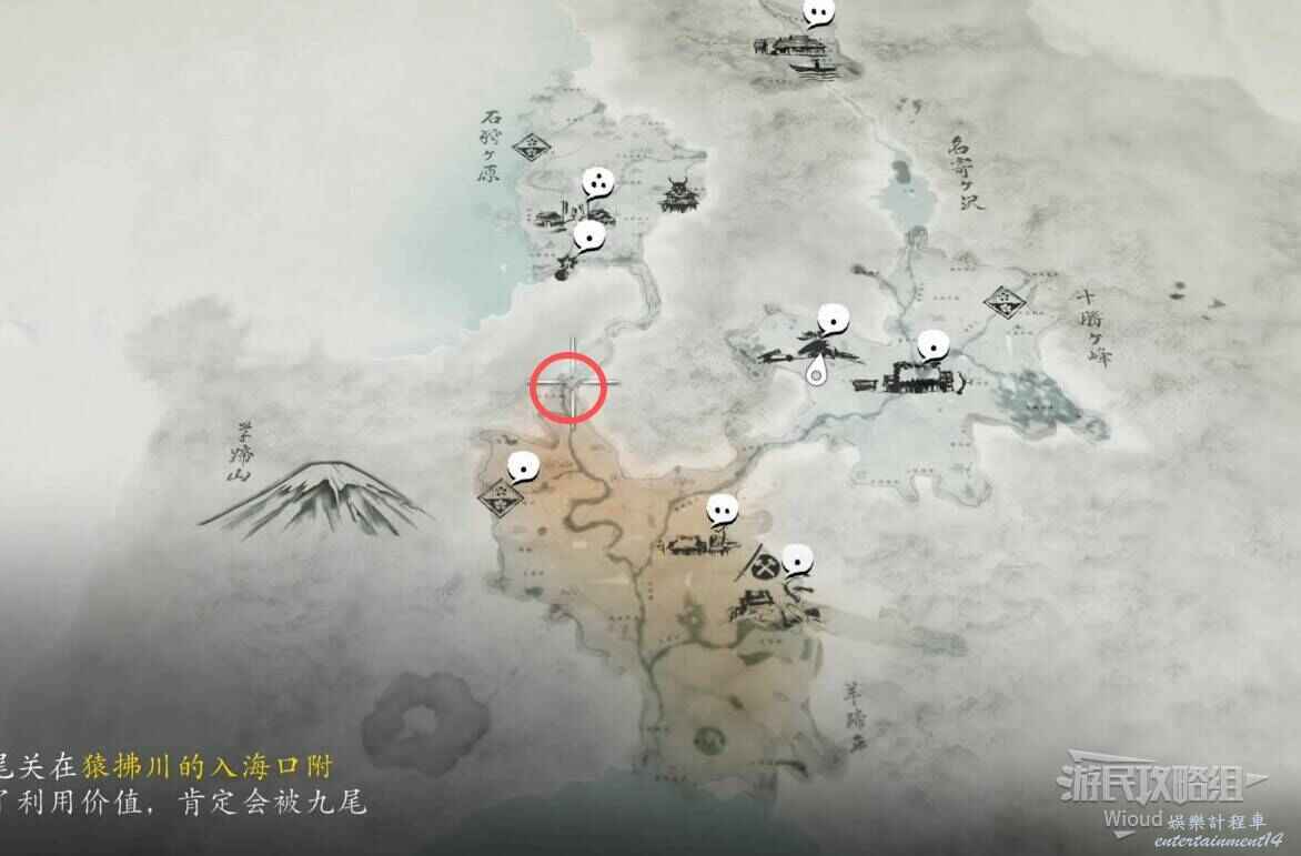 位置如下圖所示,在【羊蹄草原】右上部分【努普魯川】旁邊。