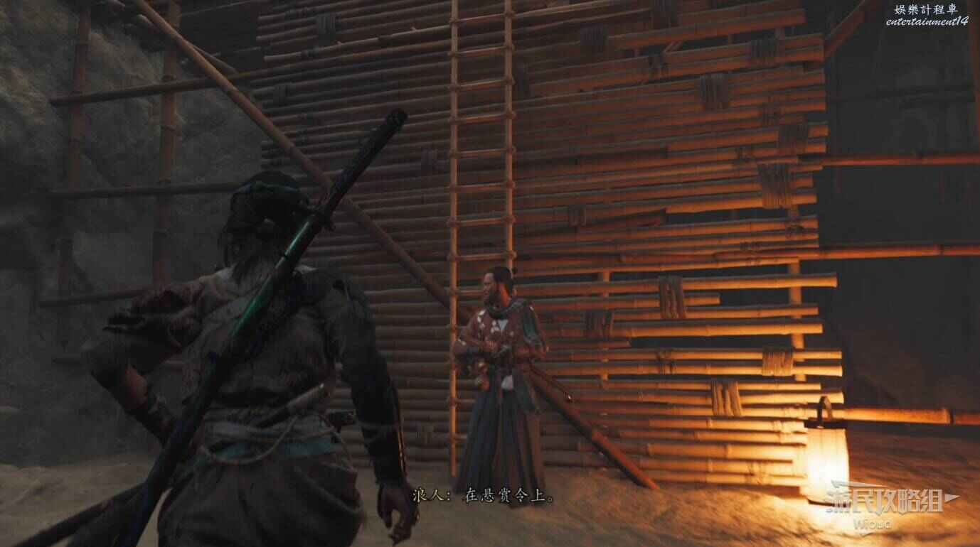 跟著浪人走到木梯前,他發現我們的真實身份,戰鬥結束爬梯子上去。